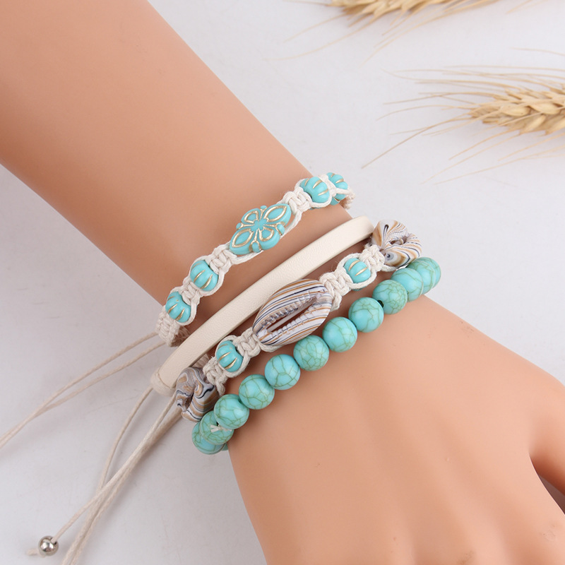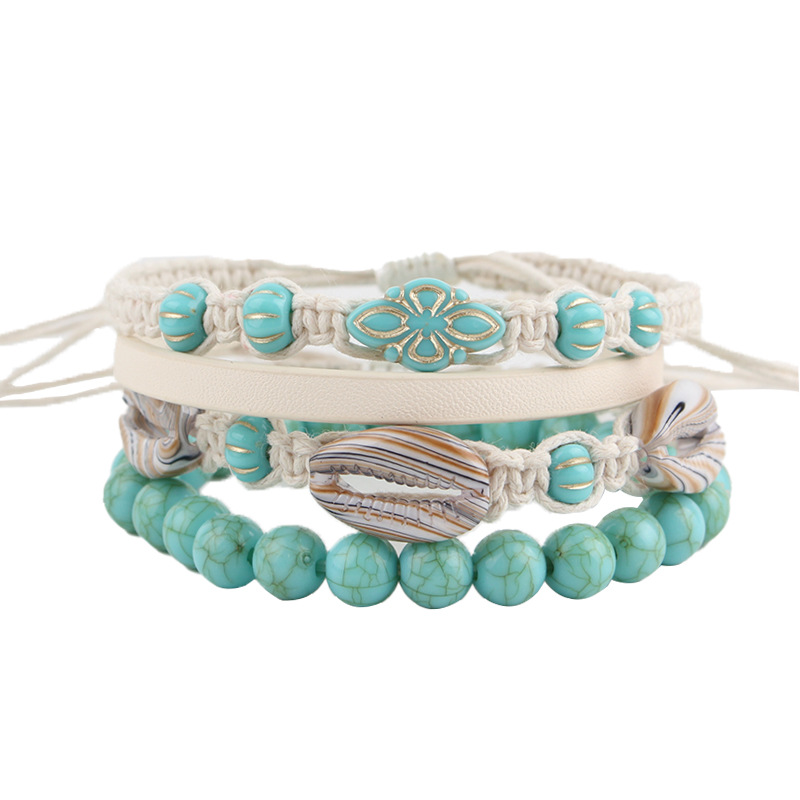 1:Green beads adjustable bracelet2:Shell adjustable bracelet3:Creamy-white PU adjustable bracelet4:Green bead bracelet5:4-piece suit