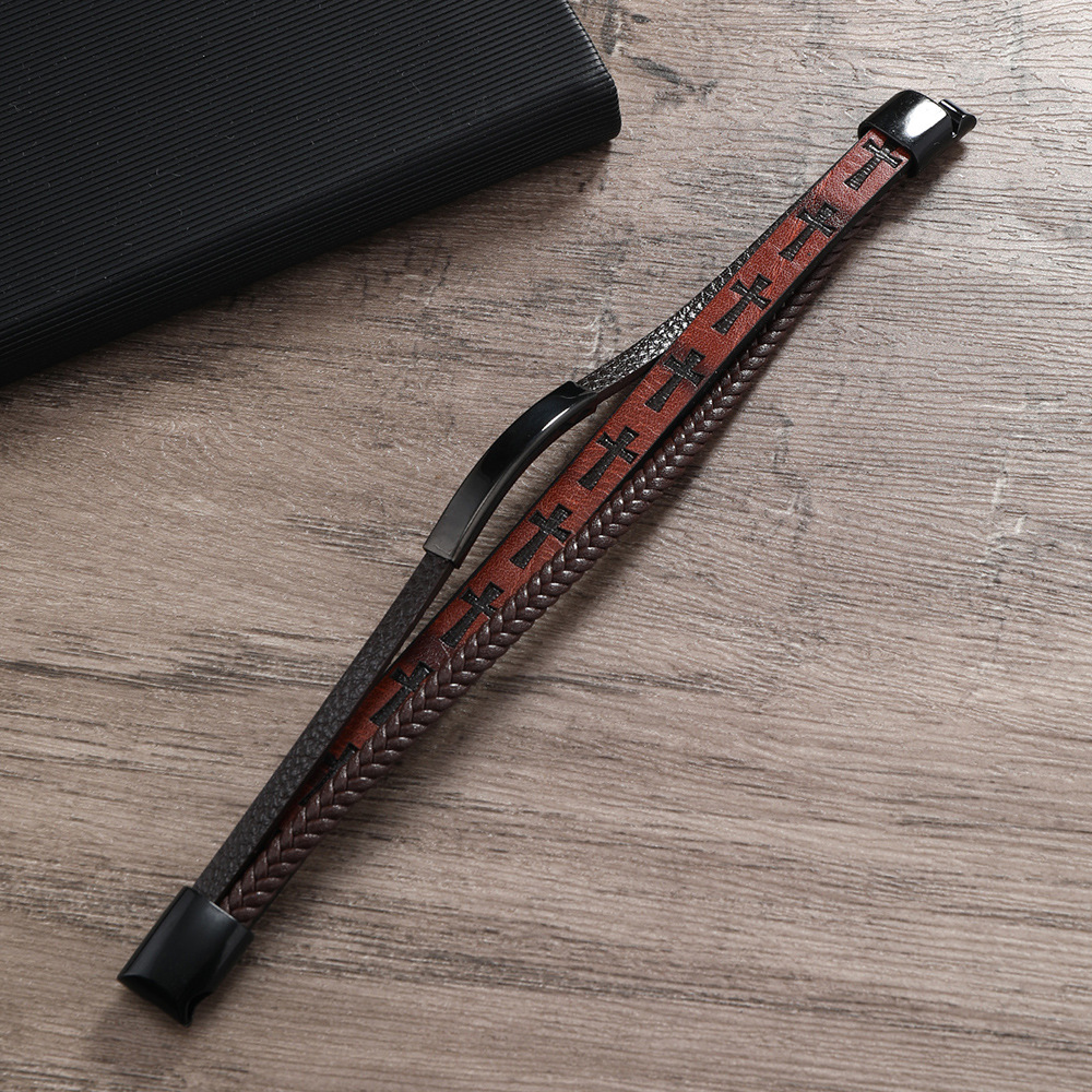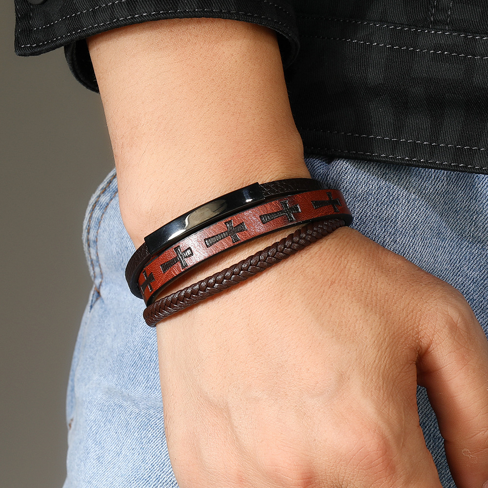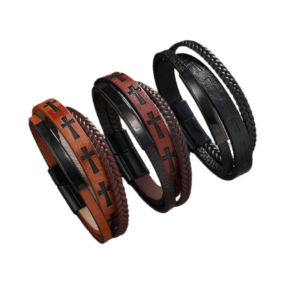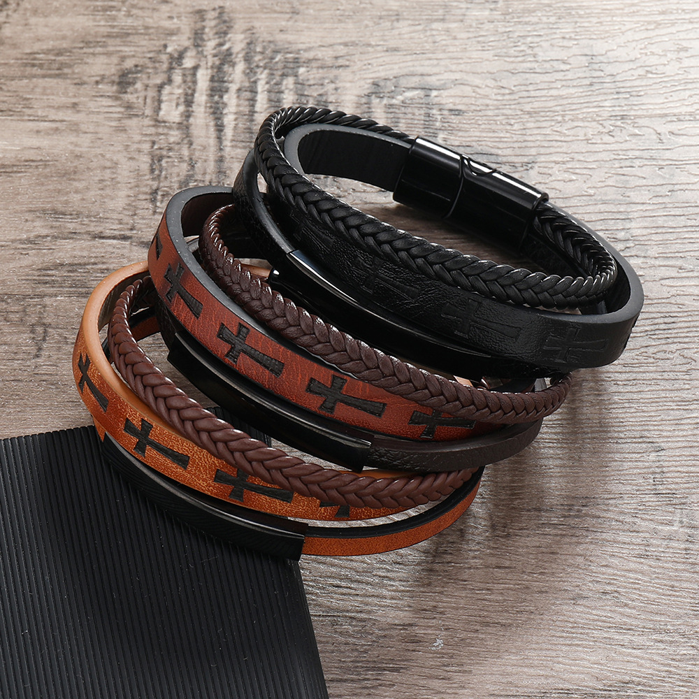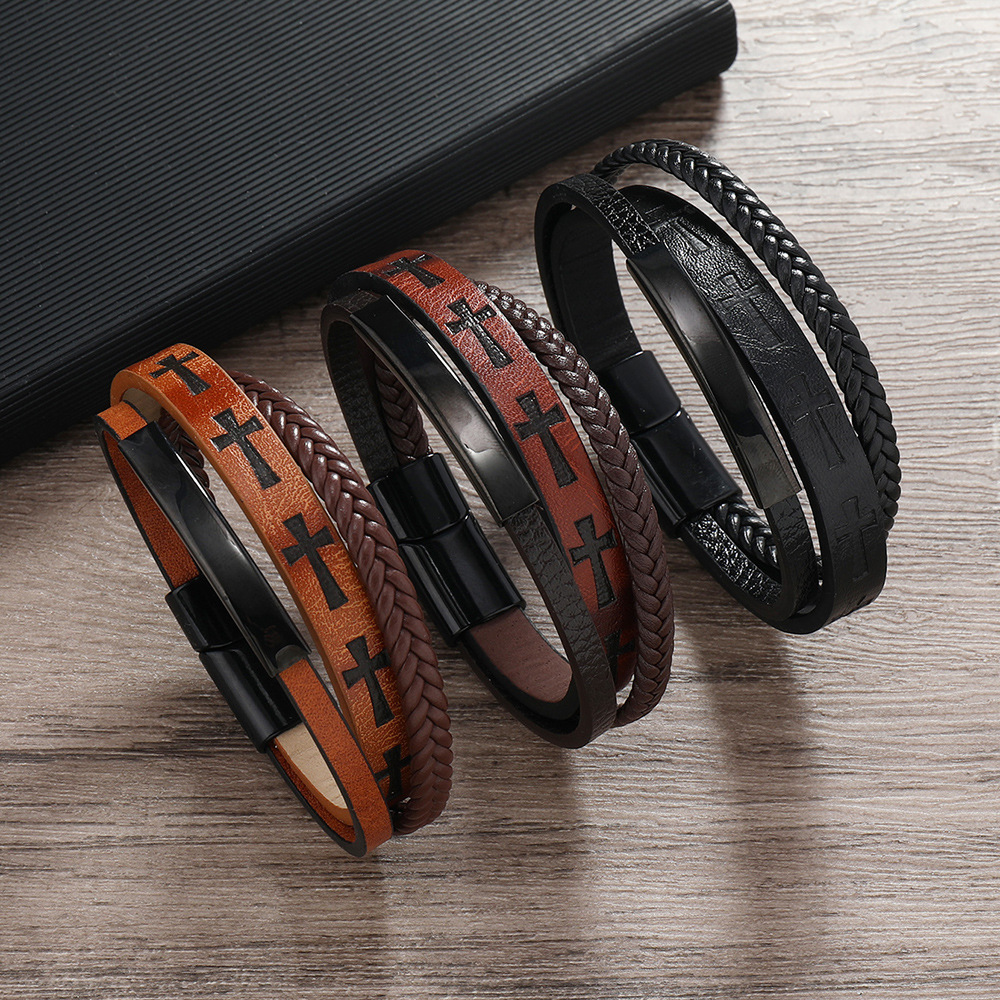 Bracelets cordon PU, cuir PU, avec 201 acier inoxydable, fait à la main, trois couches & bijoux de mode & pour homme, plus de couleurs à choisir, Vendu par PC