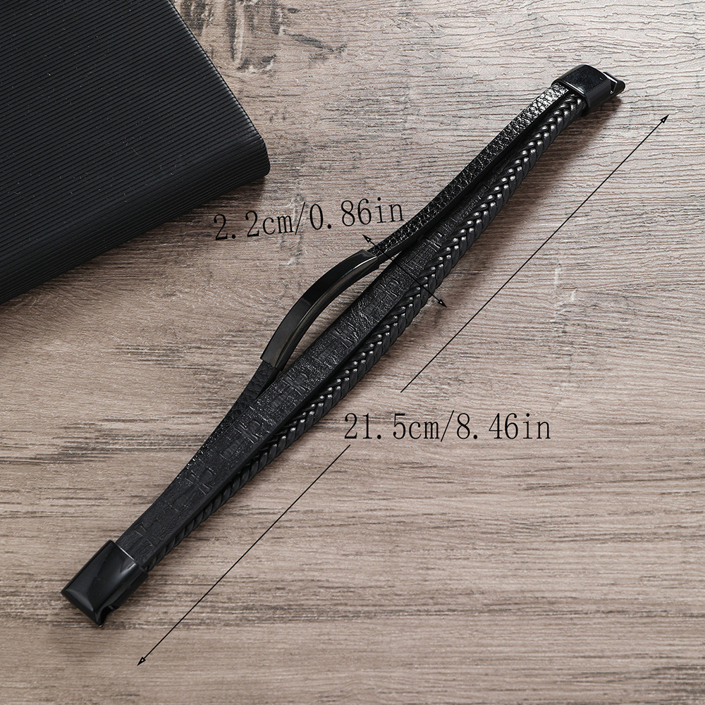 Bracelets cordon PU, Acier inoxydable 304, avec cuir PU, trois couches & longueur différente pour le choix & pour homme, noire, Vendu par PC