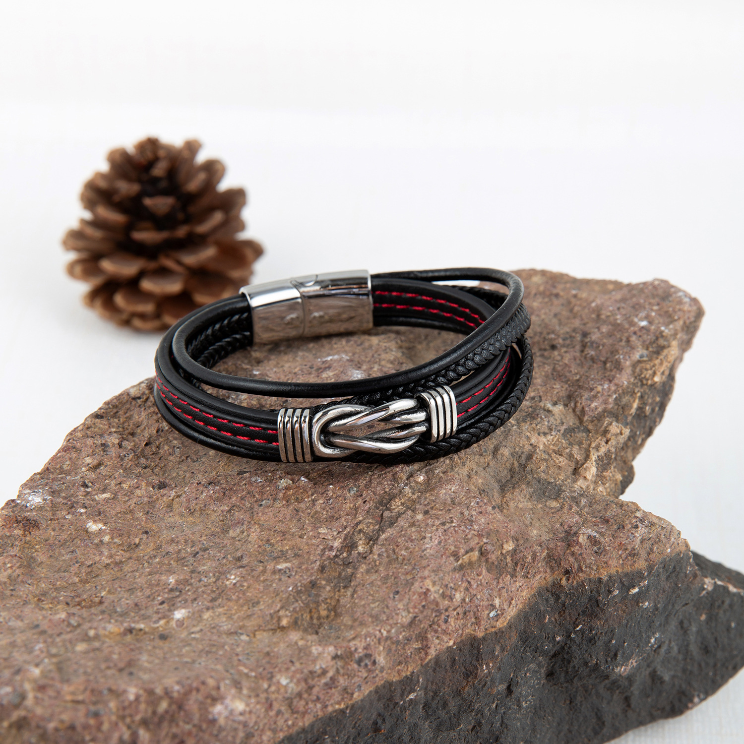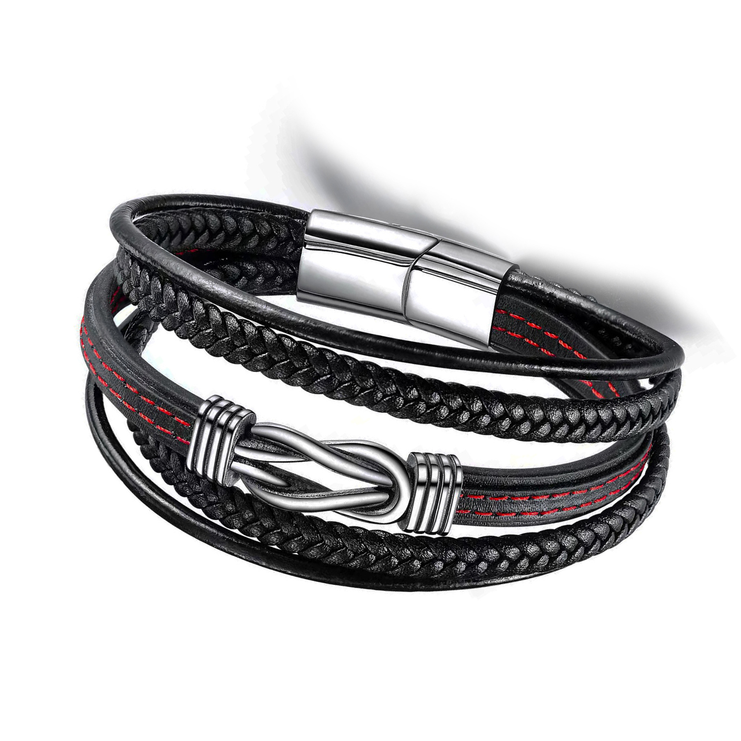 Bracelets cordon PU, Acier inoxydable 304, avec cuir PU, poli, multicouche & longueur différente pour le choix & pour homme, couleur originale, Vendu par PC