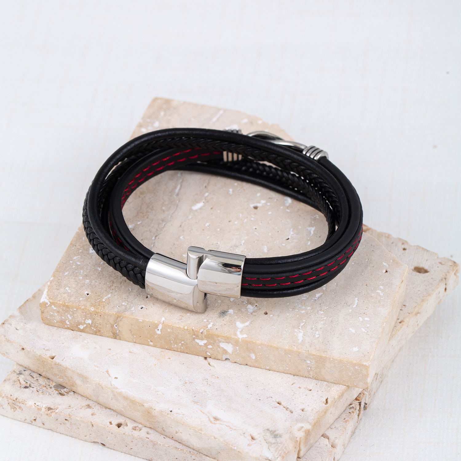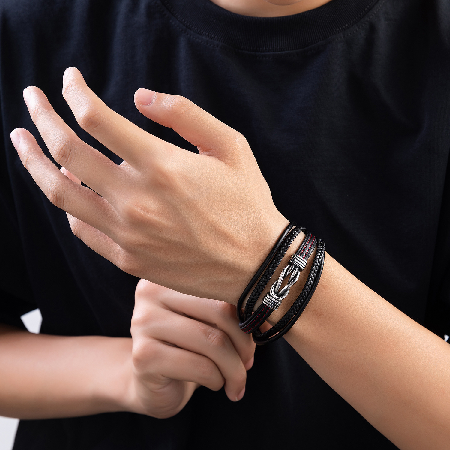 Bracelets cordon PU, Acier inoxydable 304, avec cuir PU, trois couches & longueur différente pour le choix & pour homme, noire, Vendu par PC