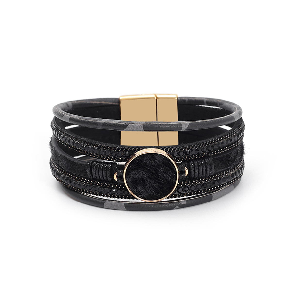 Bracelets cordon PU, cuir PU, avec alliage de zinc, Placage, multicouche & styles différents pour le choix & pour femme & avec strass, plus de couleurs à choisir, Vendu par PC