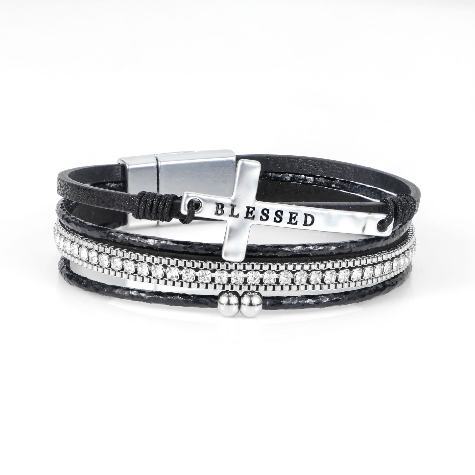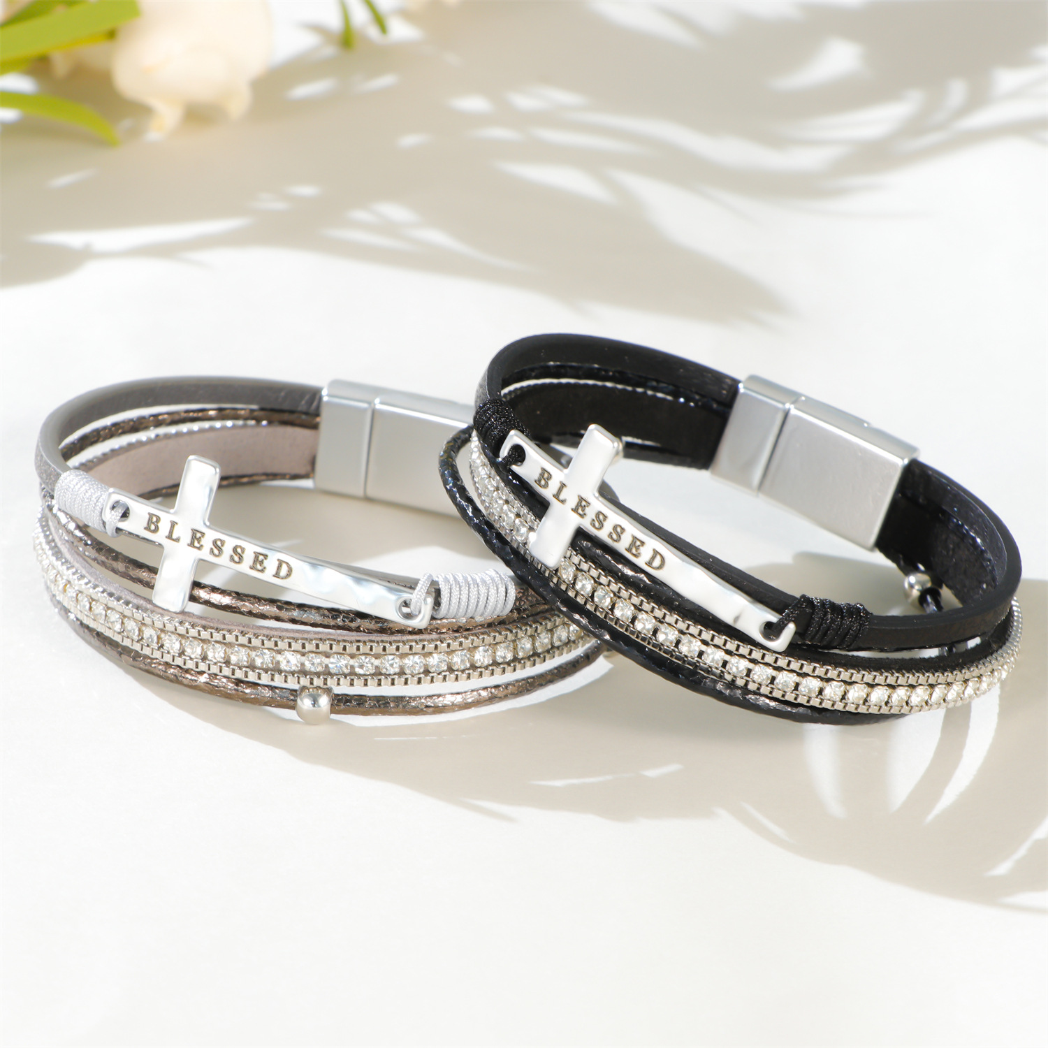 Bracelets cordon PU, cuir PU, avec alliage de zinc, multicouche & pour femme & avec strass, plus de couleurs à choisir, Longueur 19.5 cm, Vendu par PC