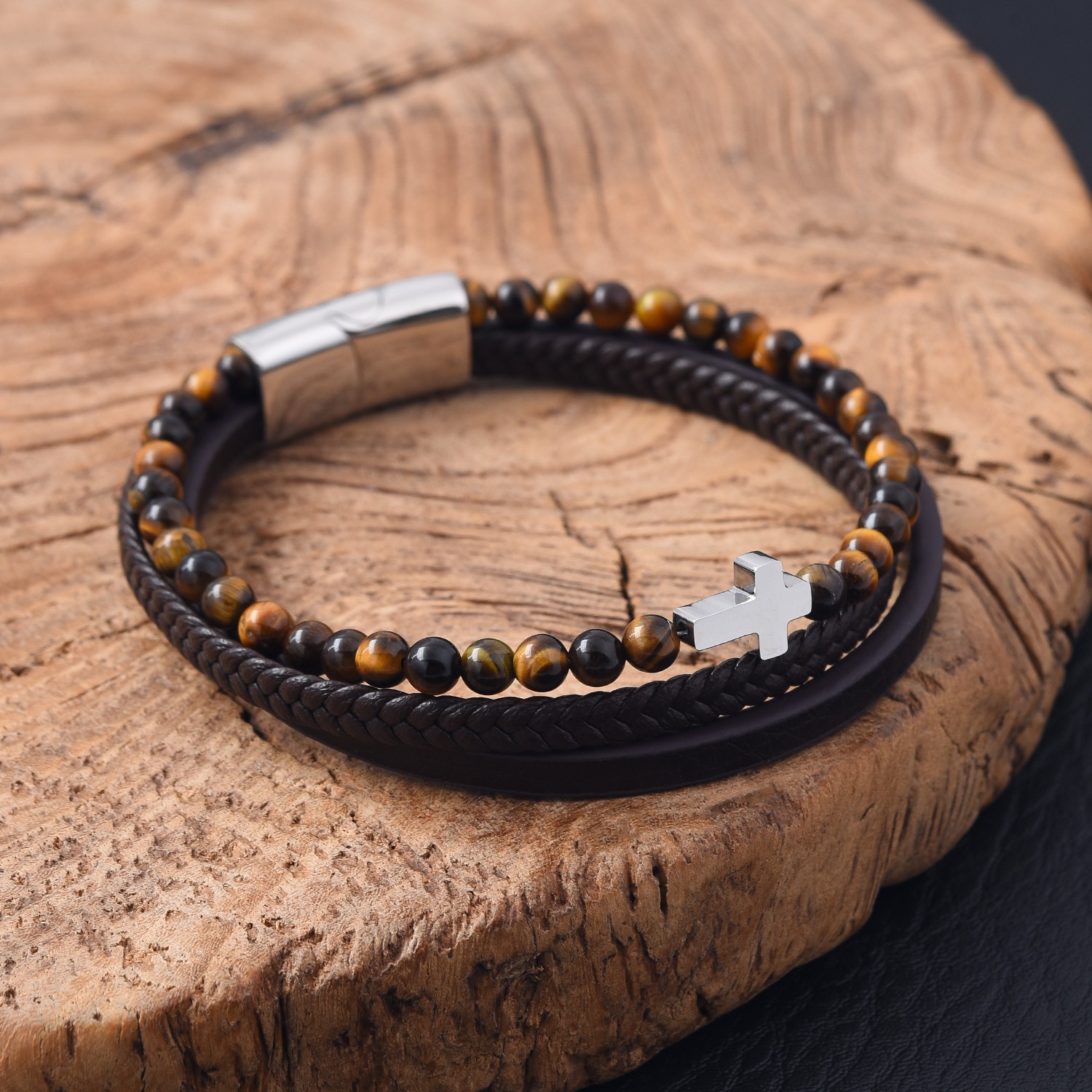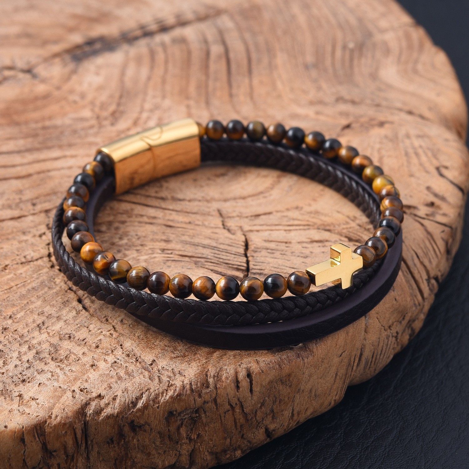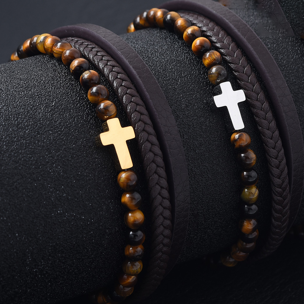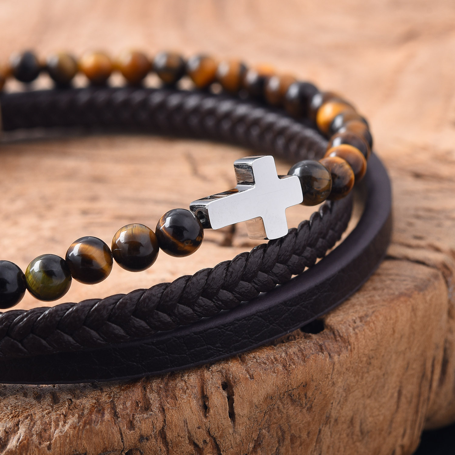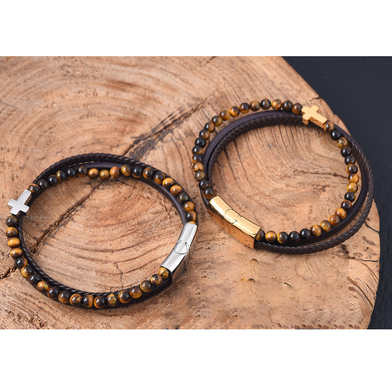 Bracelets cordon PU, Acier inoxydable 304, avec cuir PU, trois couches & longueur différente pour le choix & pour homme, noire, Vendu par PC