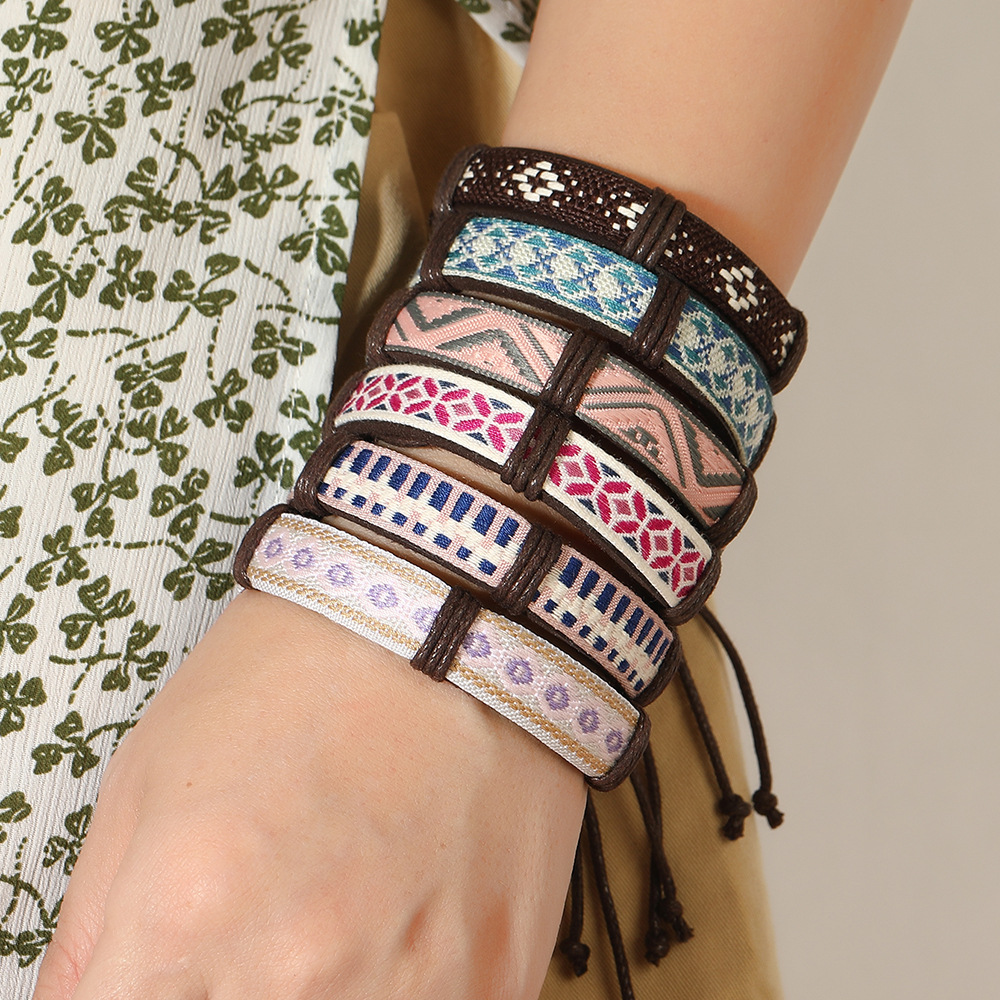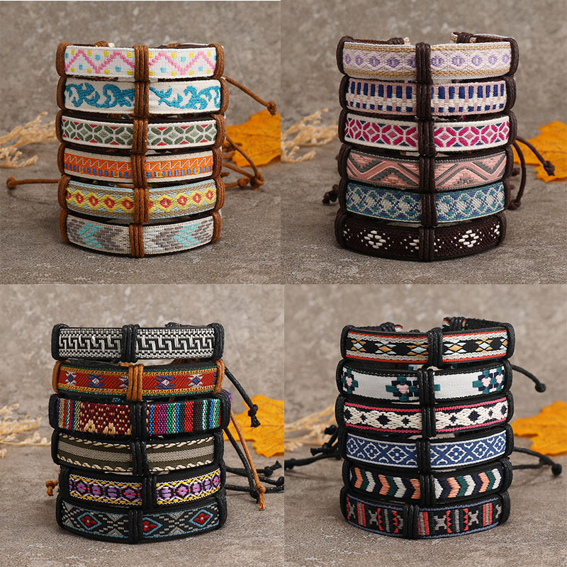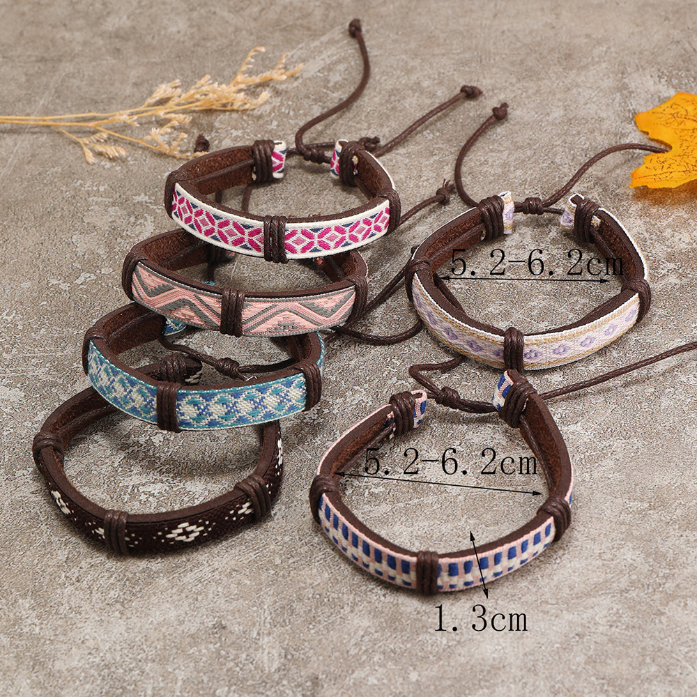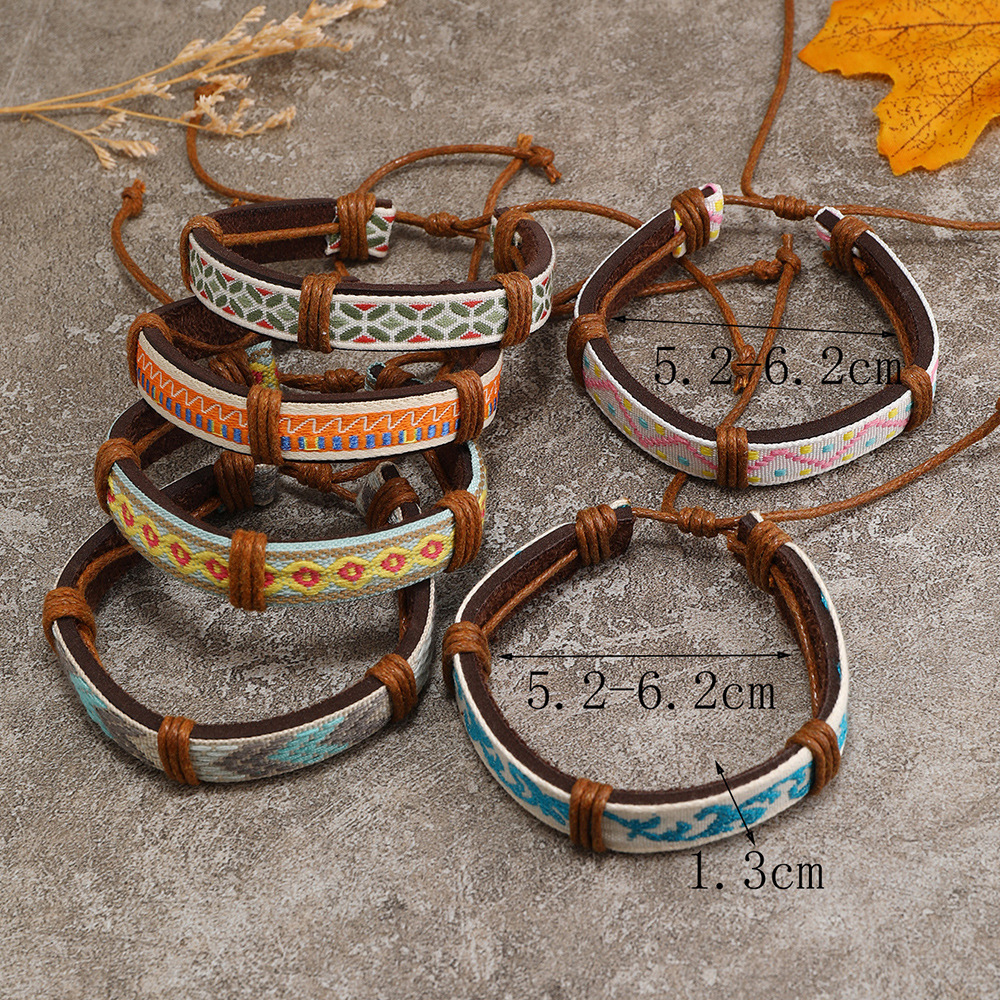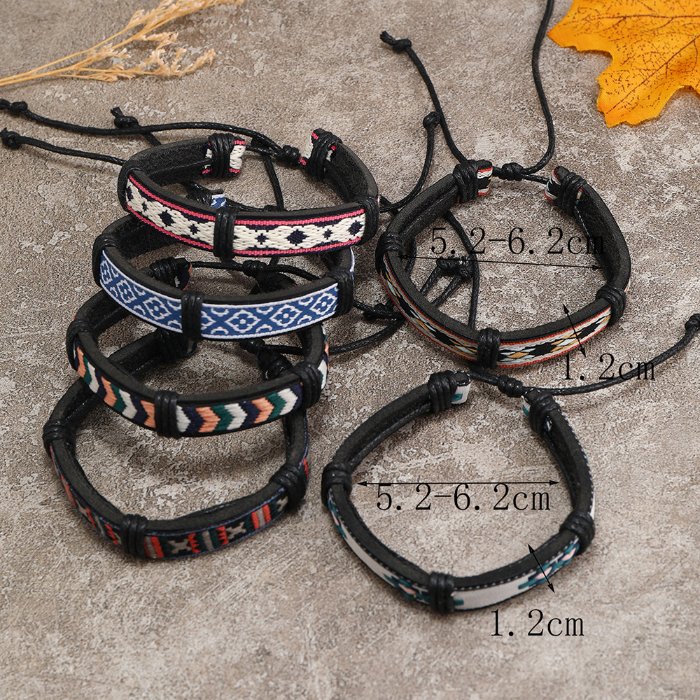 Bracelets cordon PU, cuir PU, avec corde de cire & cordon de polyester, fait à la main, 5 pièces & unisexe & modèles différents pour le choix, multicolore, Vendu par fixé