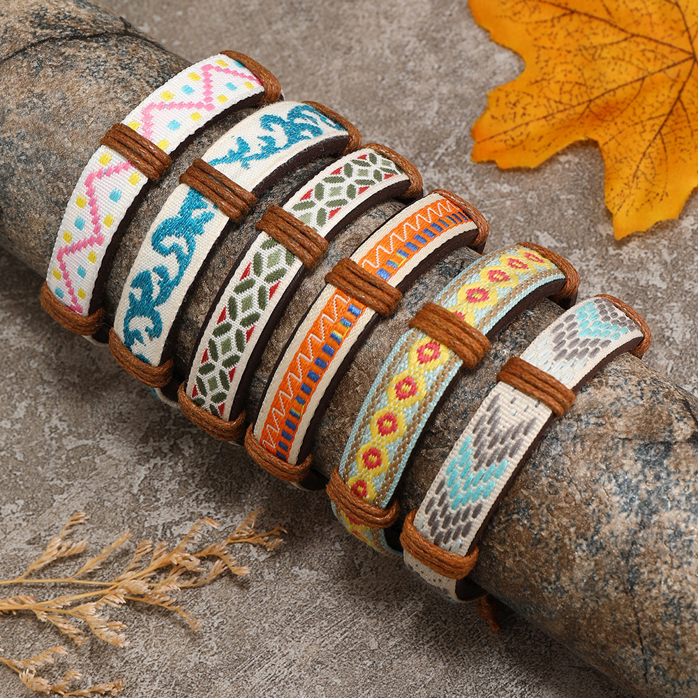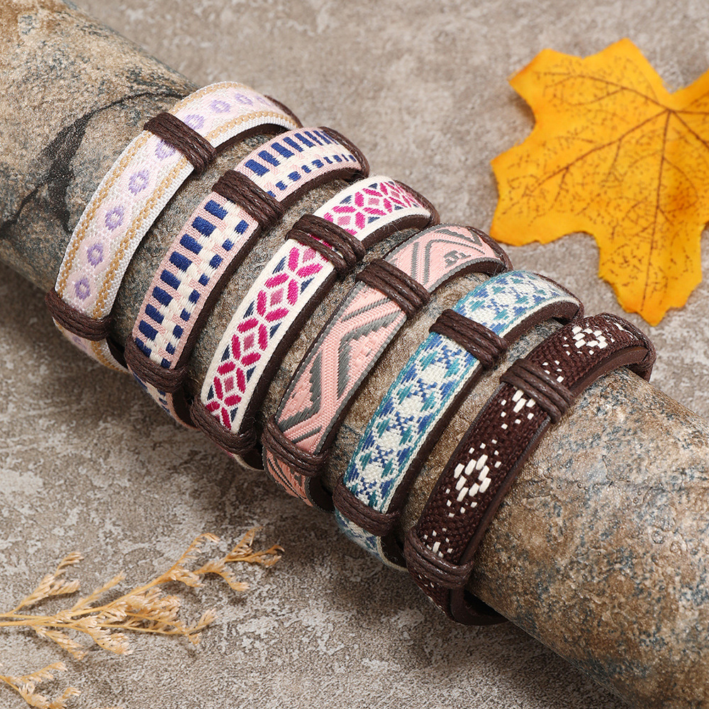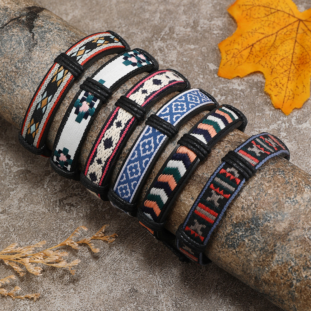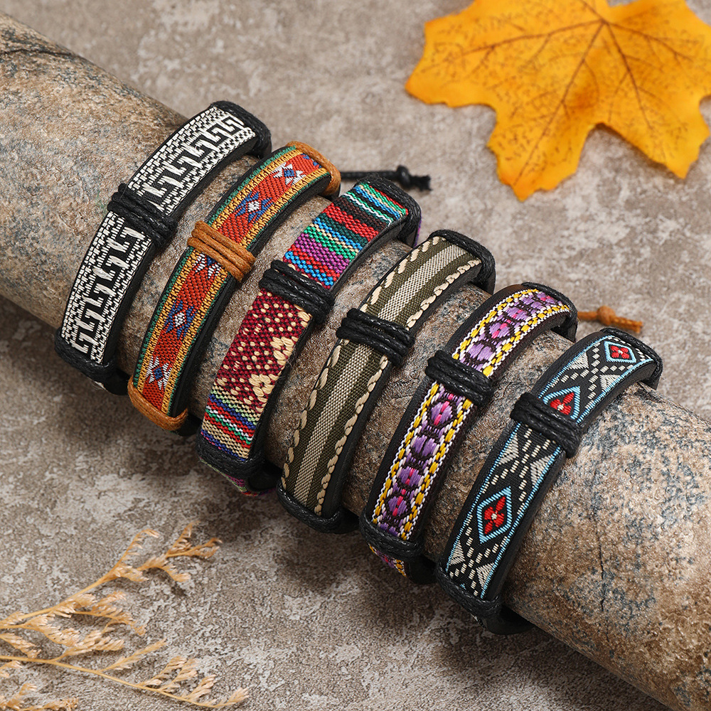 Bracelets cordon PU, cuir PU, avec corde de cire & cordon de polyester, fait à la main, 5 pièces & unisexe & modèles différents pour le choix, multicolore, Vendu par fixé
