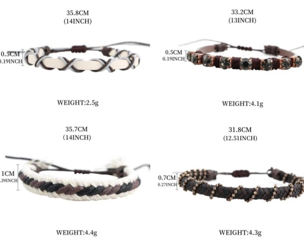 1:Brillone adjustable bracelet2:Hand-woven adjustable bracelet3:PU adjustable bracelet4:Bead Chain Adjustable Bracelet5:4 Piece Set