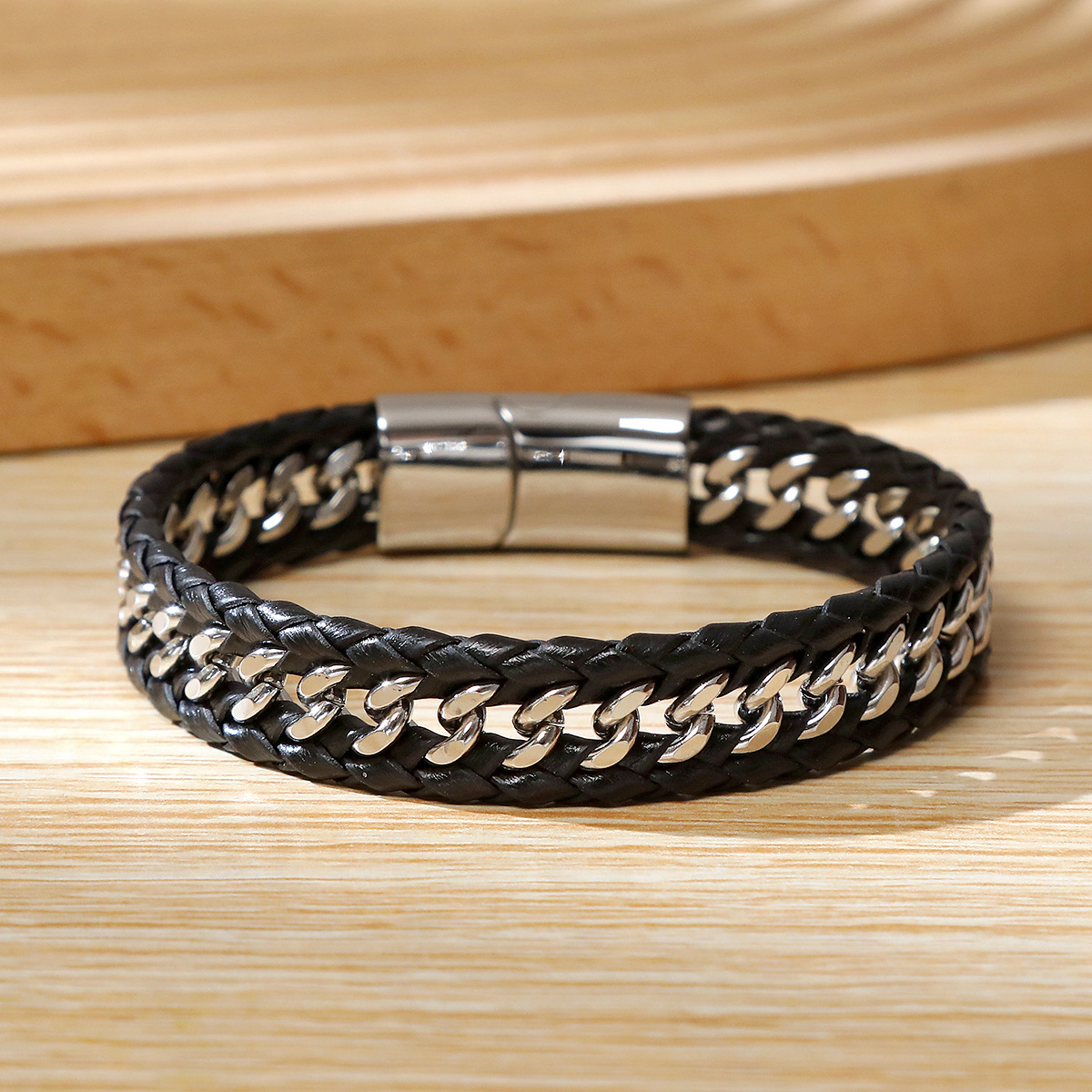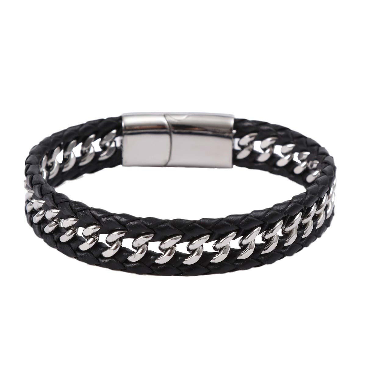 Bracelets cordon PU, Acier inoxydable 304, avec cuir PU, trois couches & longueur différente pour le choix & pour homme, noire, Vendu par PC