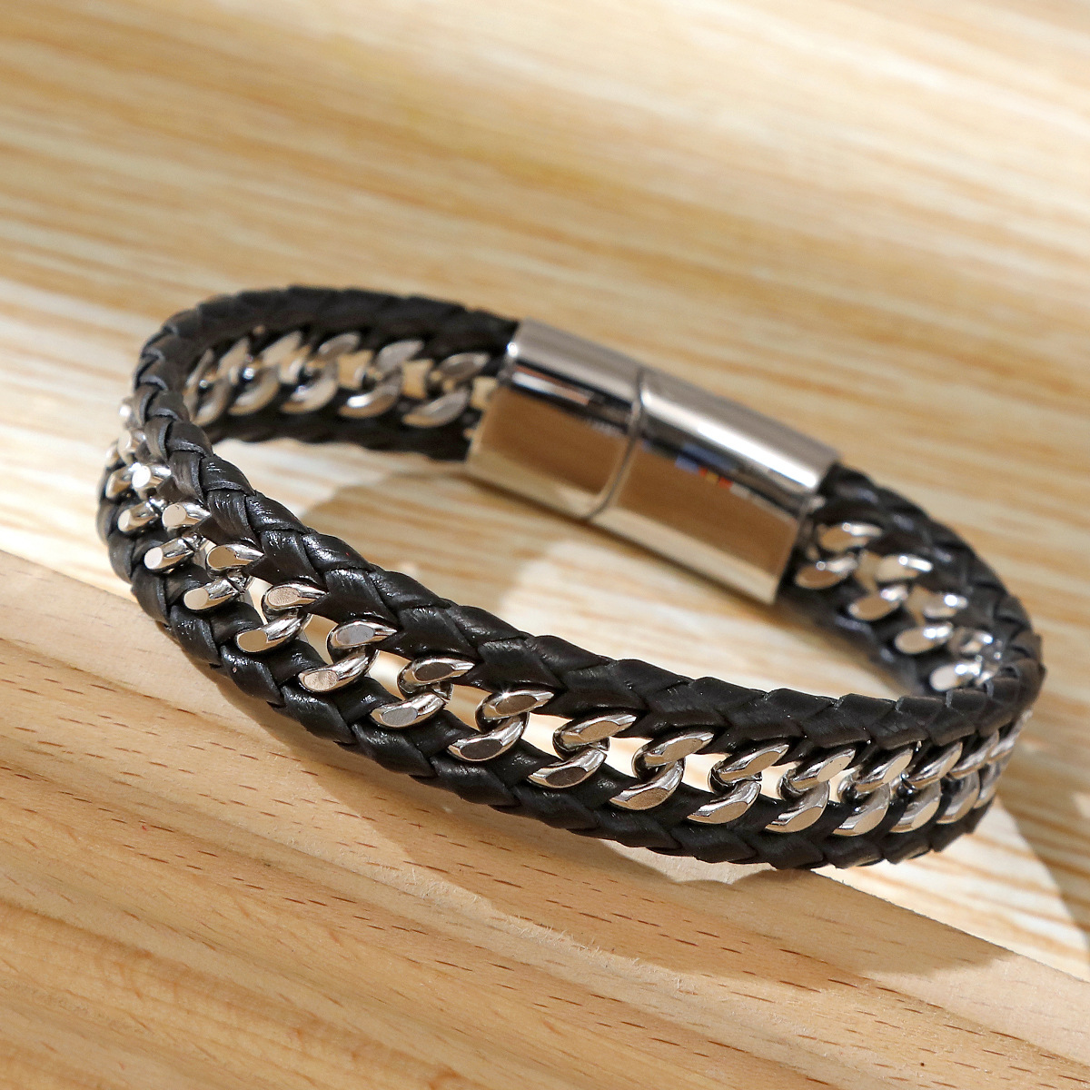 Bracelets cordon PU, Acier inoxydable 304, avec Microfibre PU, fait à la main, bijoux de mode & pour homme, plus de couleurs à choisir, Longueur 21 cm, Vendu par PC