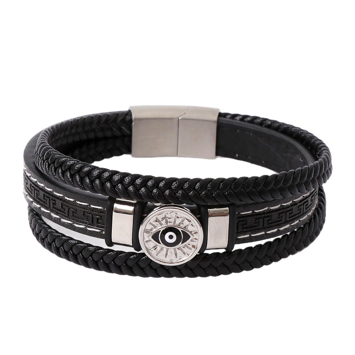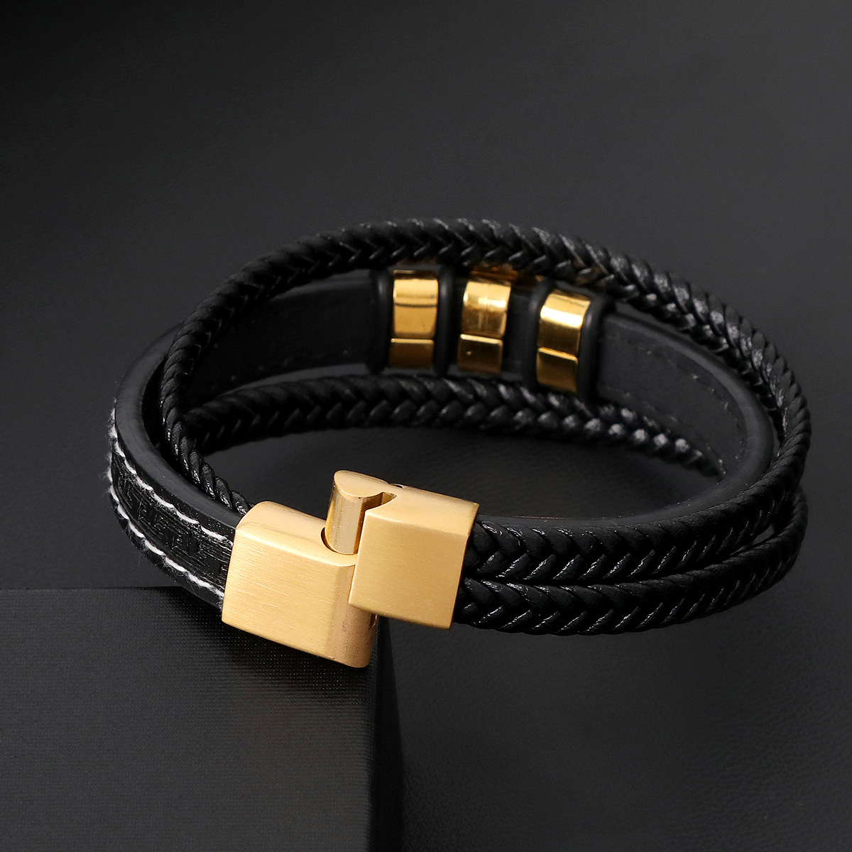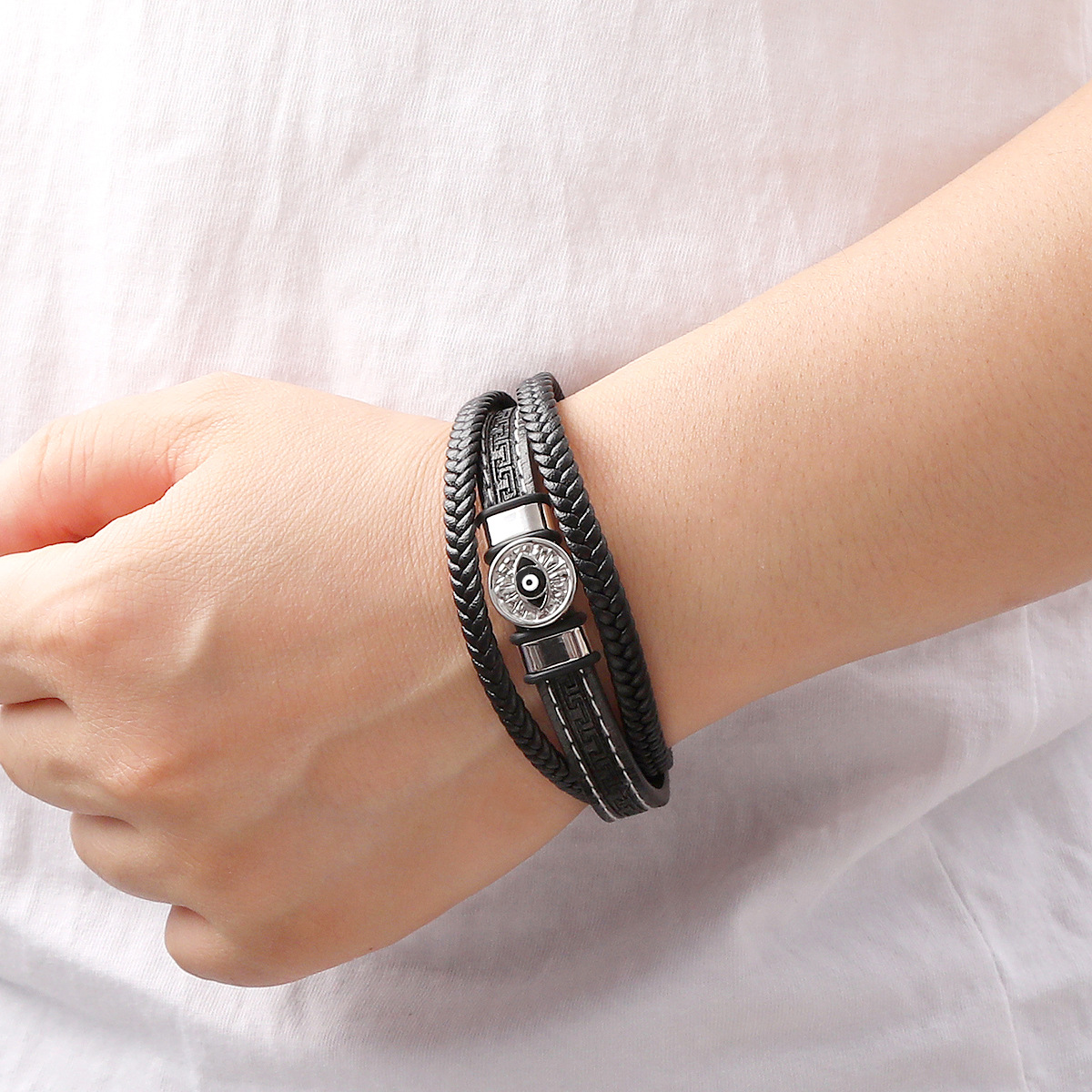 Bracelets cordon PU, Acier inoxydable 304, avec cuir PU, trois couches & longueur différente pour le choix & pour homme, noire, Vendu par PC