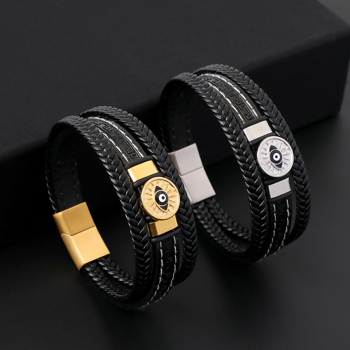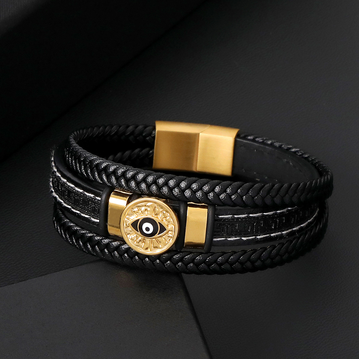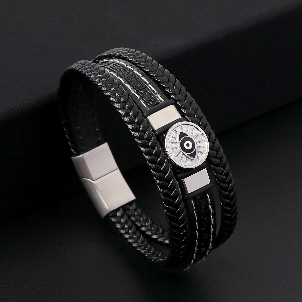 Bracelets cordon PU, Acier inoxydable 304, avec cuir PU, trois couches & longueur différente pour le choix & pour homme, noire, Vendu par PC