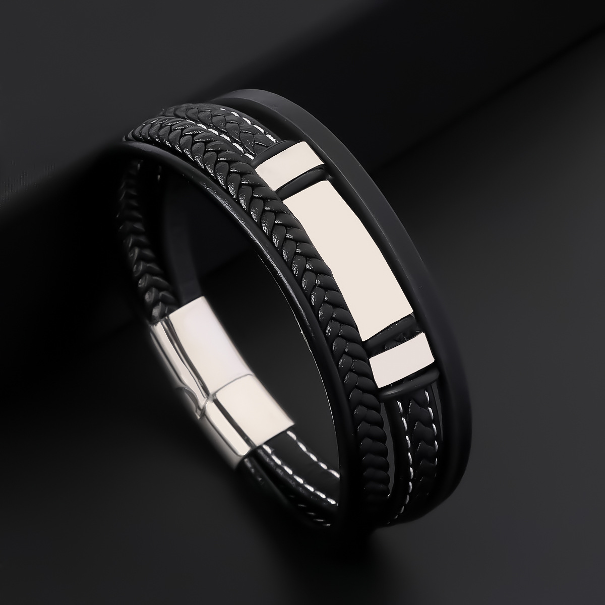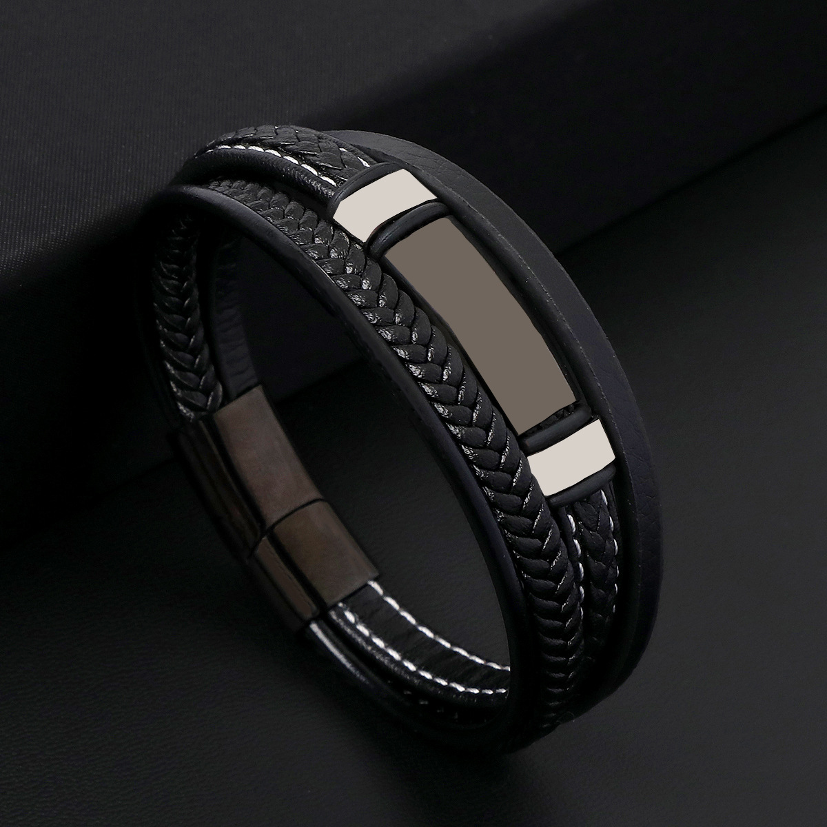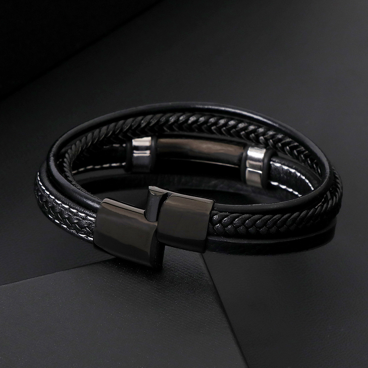 Bracelets cordon PU, Acier inoxydable 304, avec cuir PU, trois couches & longueur différente pour le choix & pour homme, noire, Vendu par PC