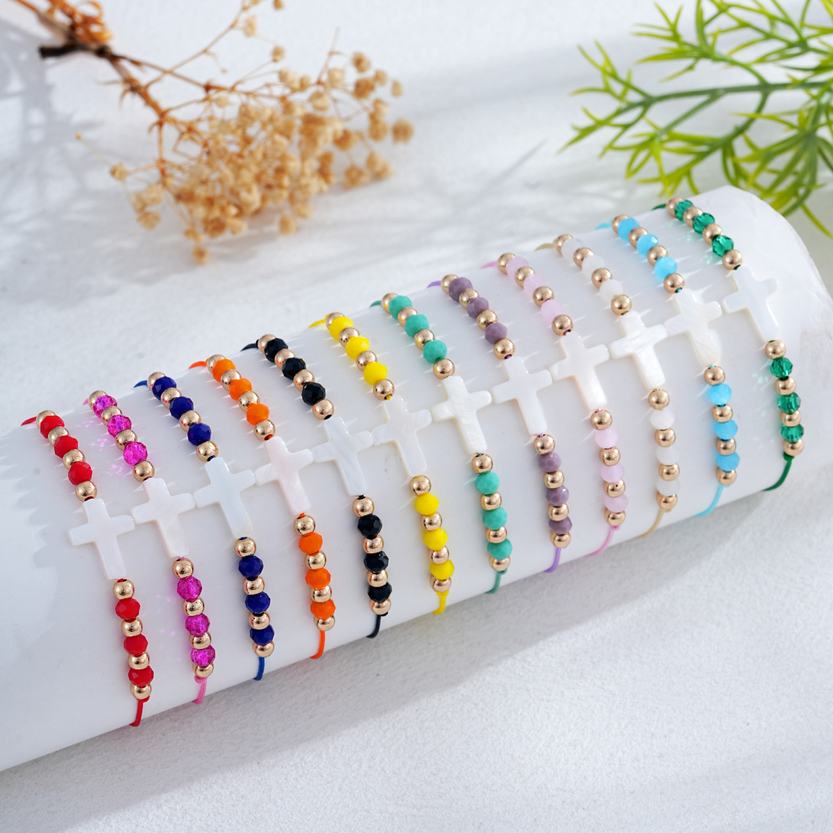Bracelets de cristal, avec coquille & alliage de zinc, Placage de couleur d'or, bijoux de mode, plus de couleurs à choisir, Vendu par brin