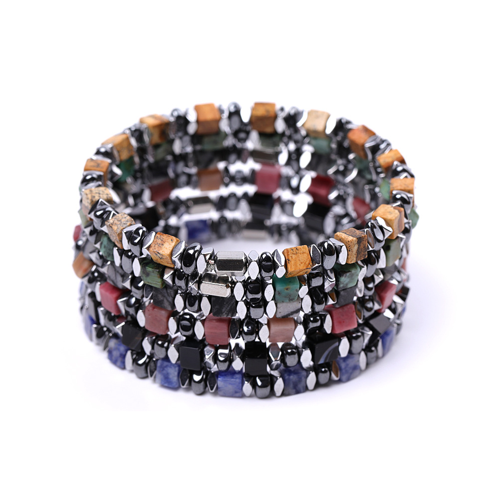 1:Photo Jasper2:Bleu spot3:green spot stone4:Rhodonite5:Black network6:Agate noire