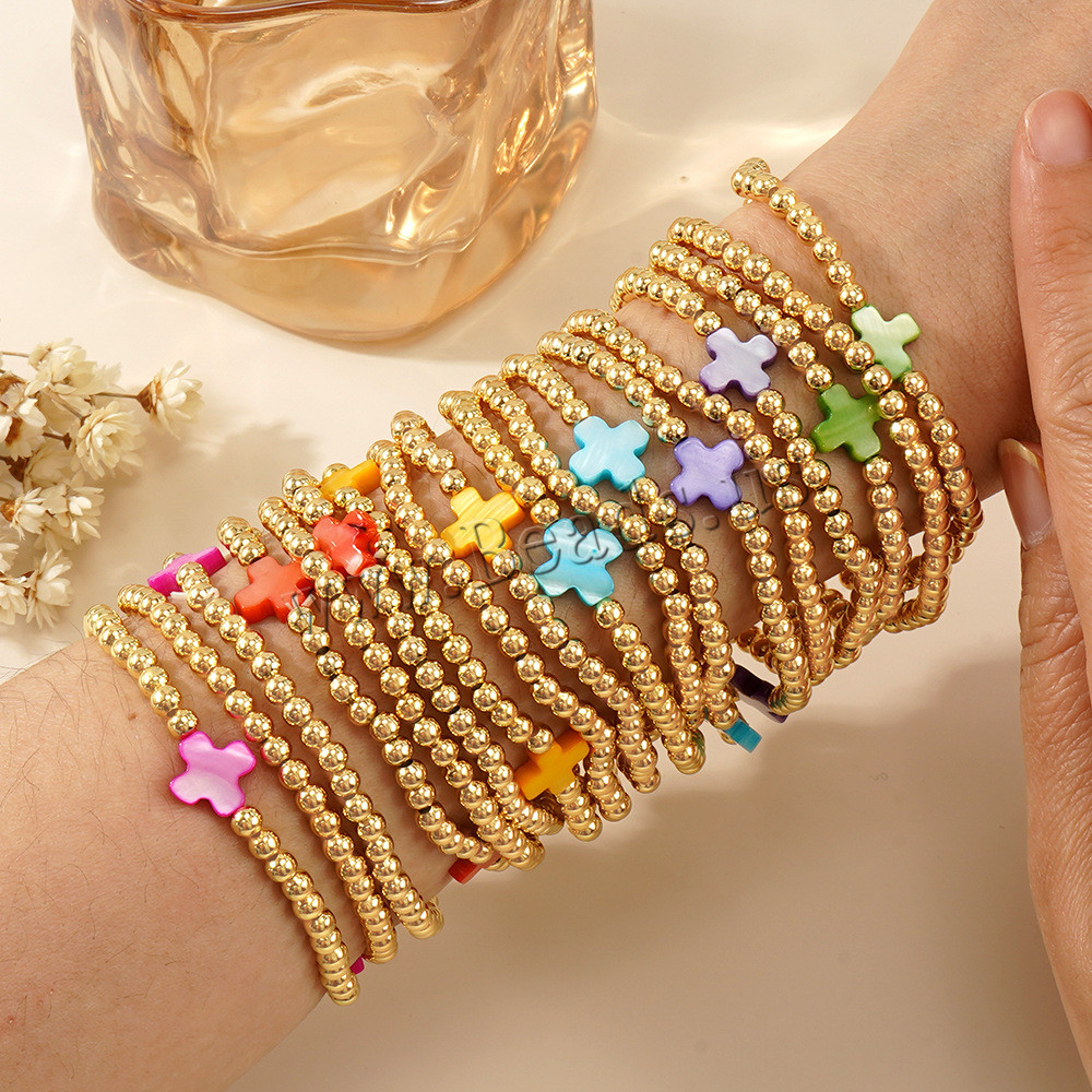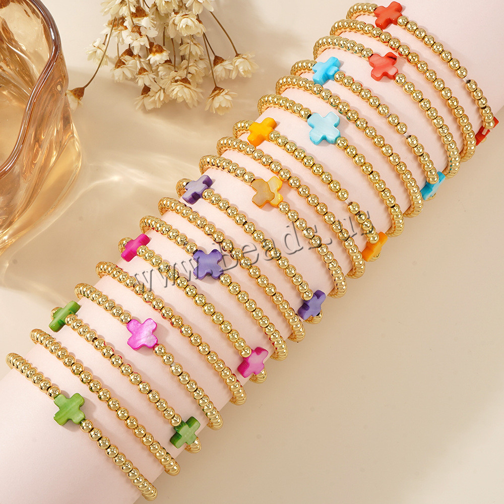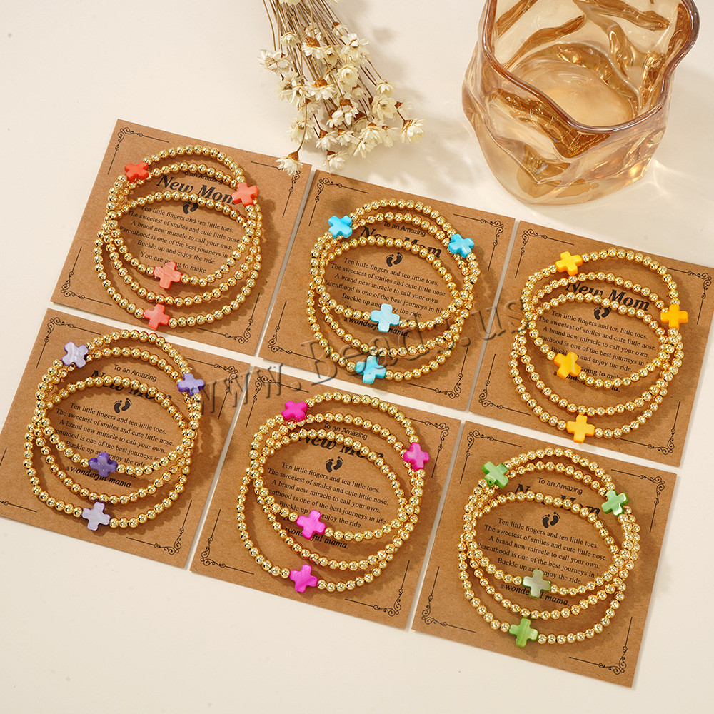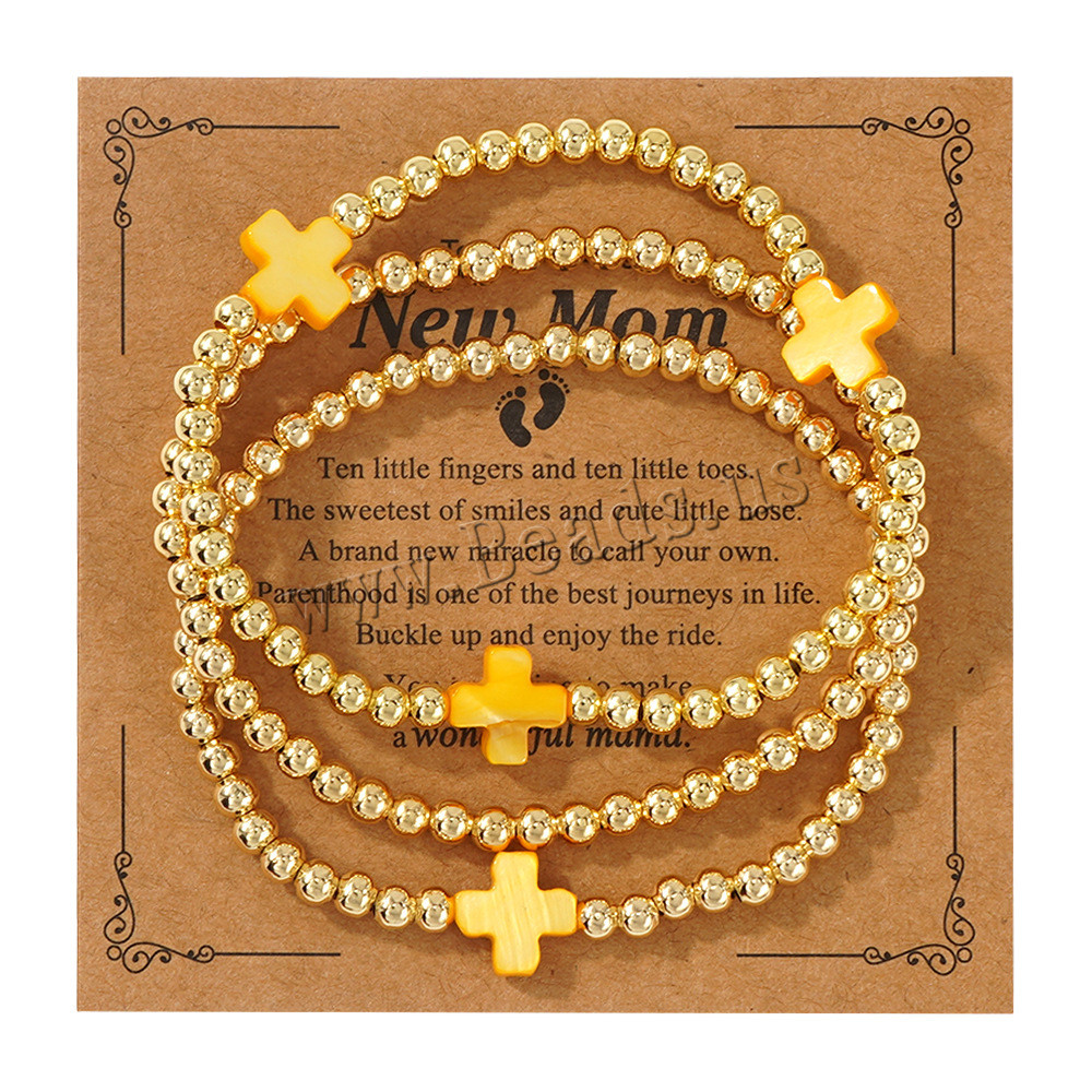 Bracelets en laiton, avec coquille, Placage de couleur d'or, trois pièces & bijoux de mode, plus de couleurs à choisir, protéger l'environnement, sans nickel, plomb et cadmium, Vendu par fixé
