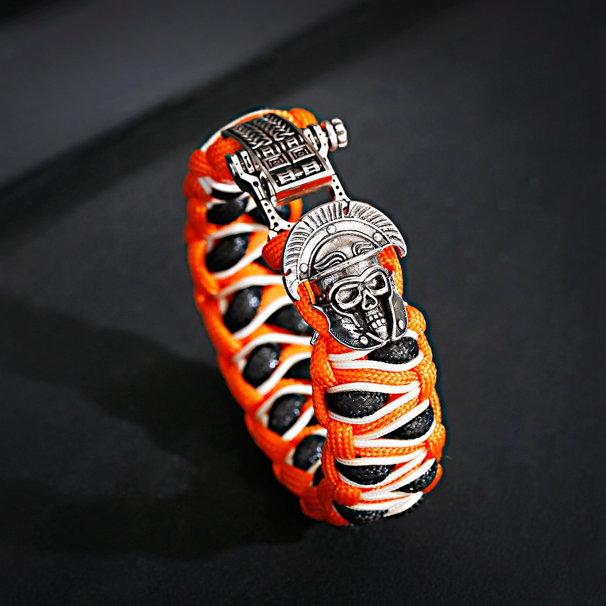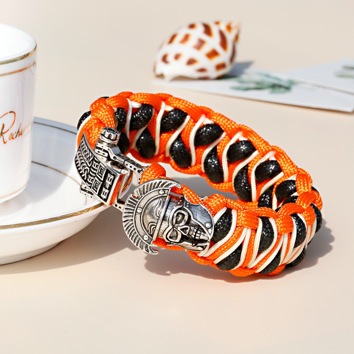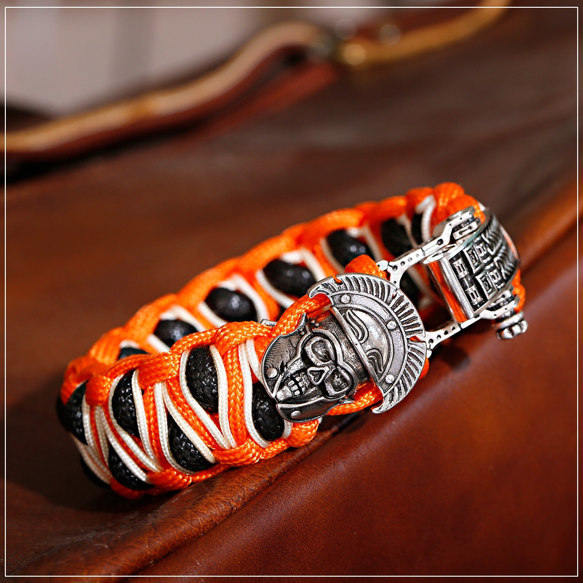Bracelets en laiton, Corde de parachute, avec laiton, crane, Plaqué de couleur d'argent, bijoux de mode & longueur différente pour le choix & pour homme, couleurs mélangées, Vendu par PC