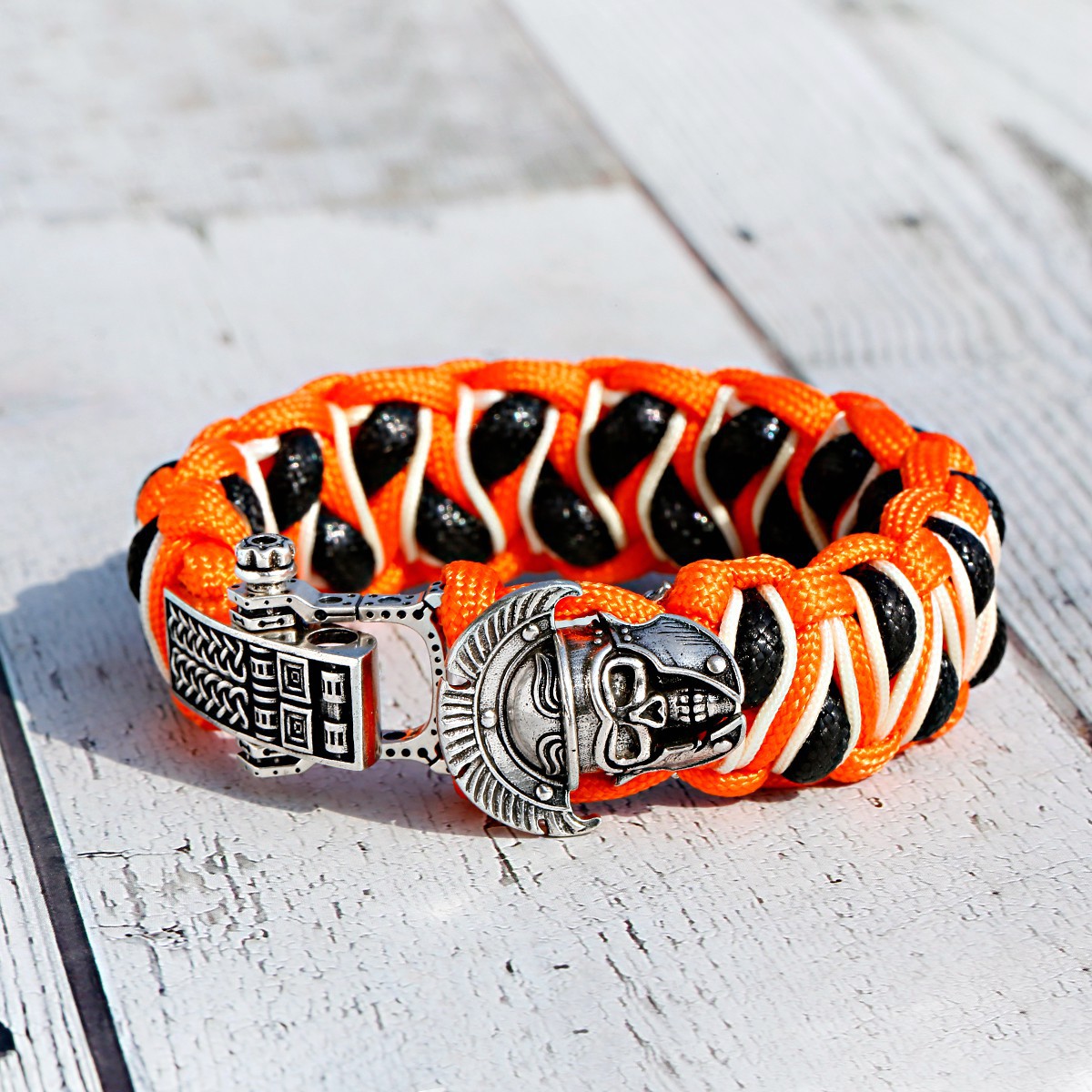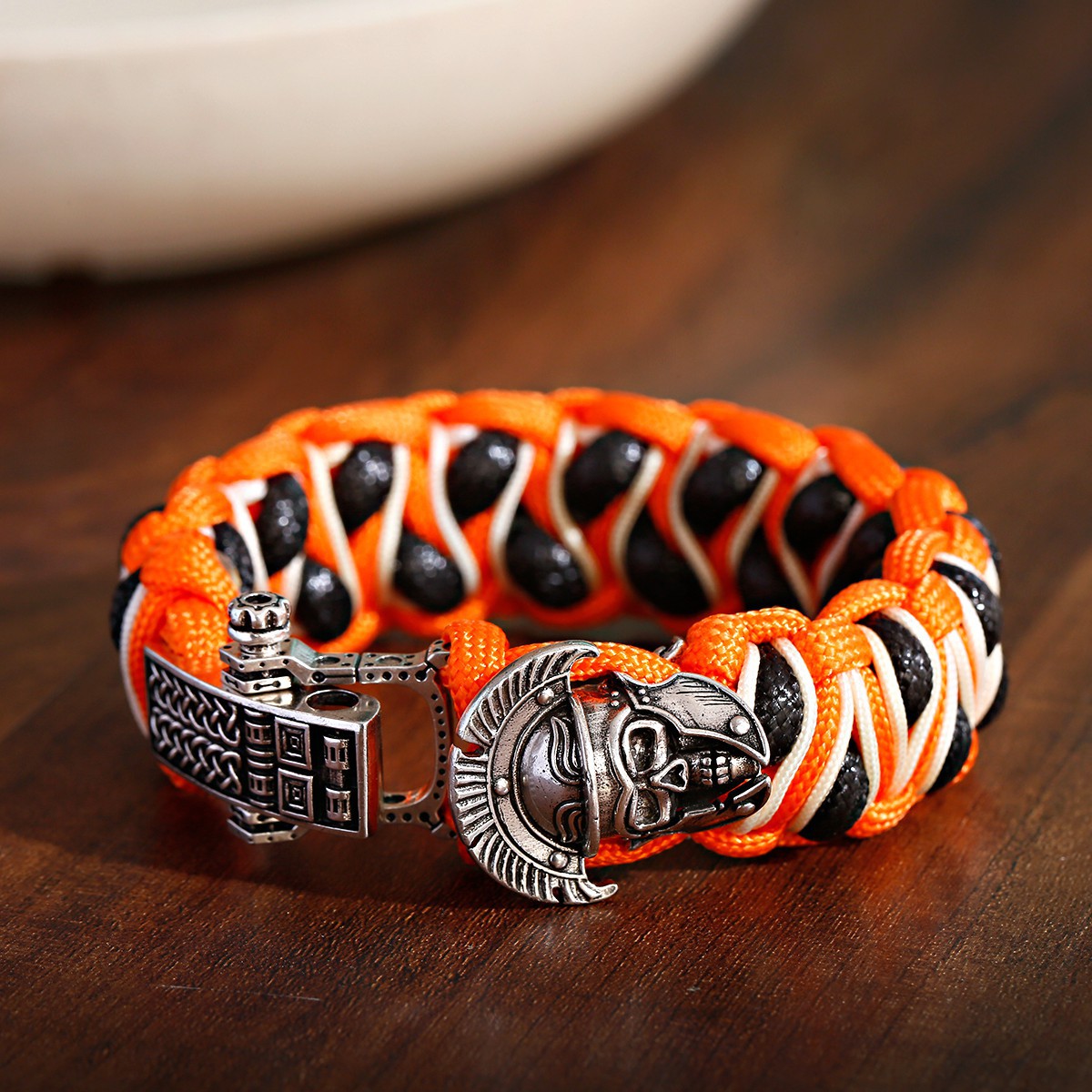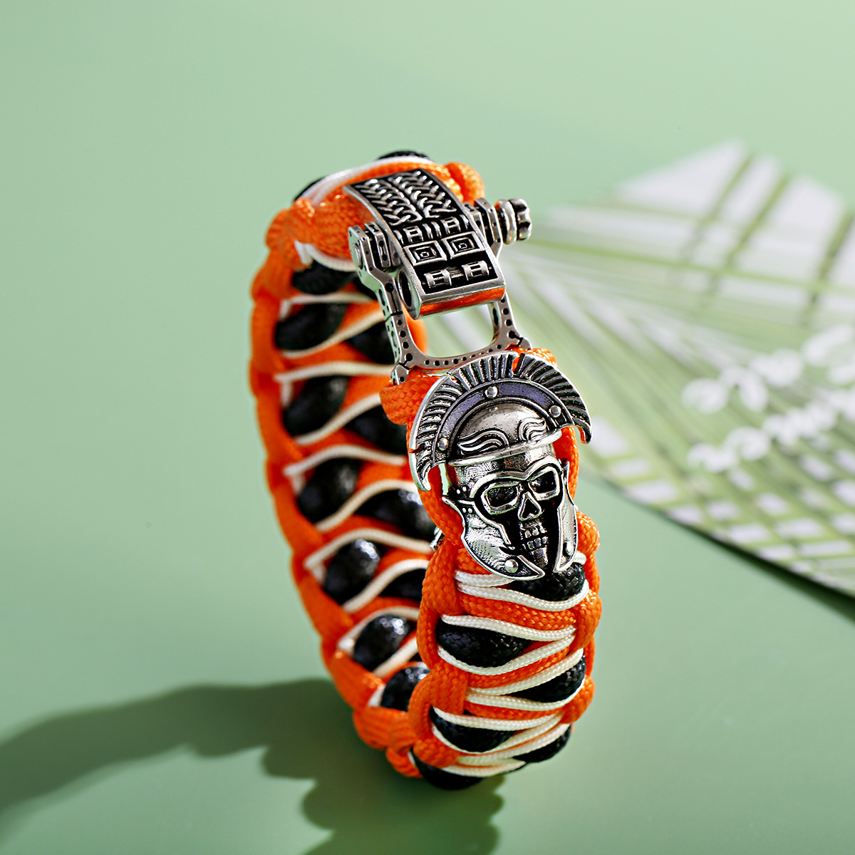 Bracelets en laiton, Corde de parachute, avec laiton, crane, Plaqué de couleur d'argent, bijoux de mode & longueur différente pour le choix & pour homme, couleurs mélangées, Vendu par PC