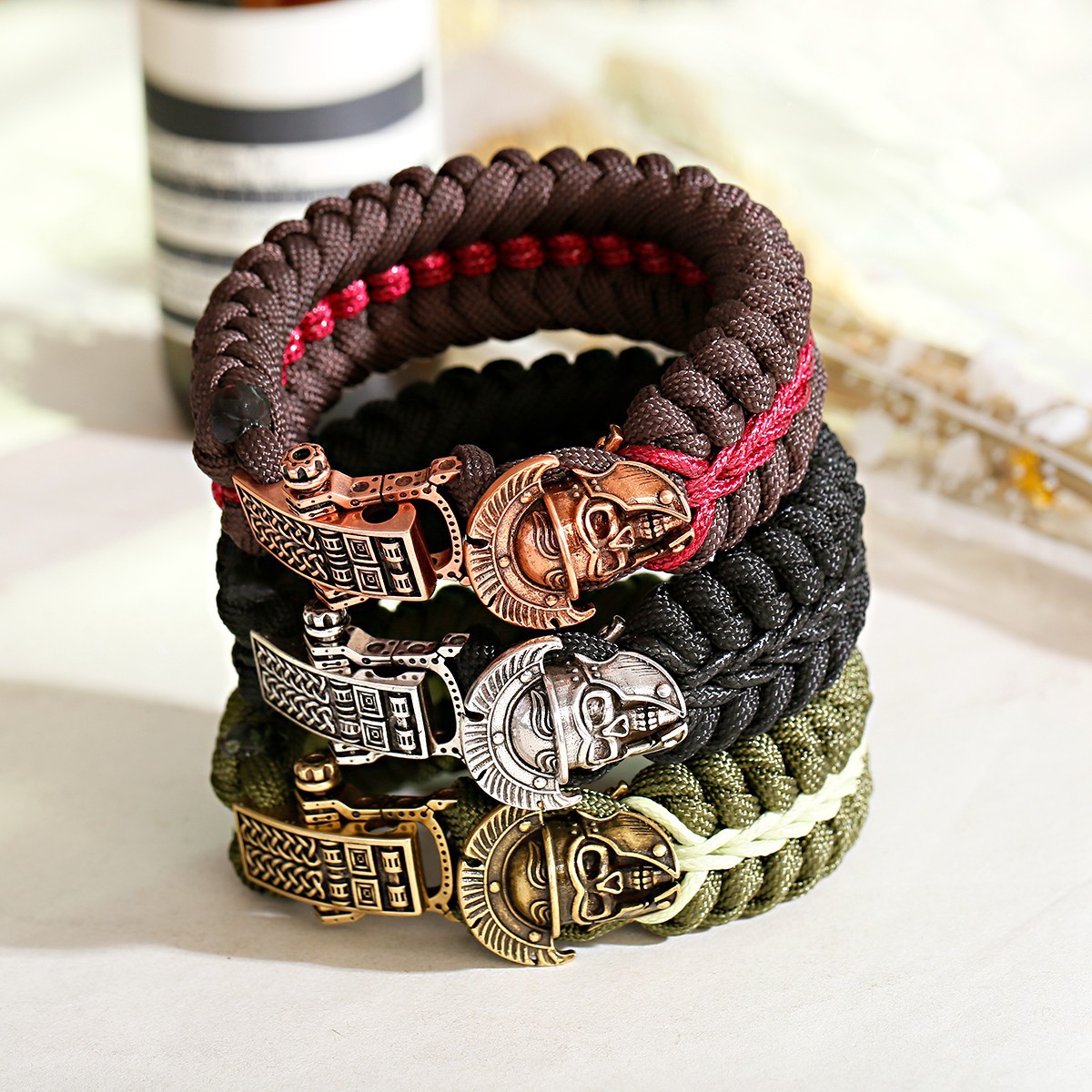 Bracelets en laiton, Corde de parachute, avec laiton, crane, Placage, bijoux de mode & pour homme, plus de couleurs à choisir, Longueur Environ 17-19 cm, Vendu par PC