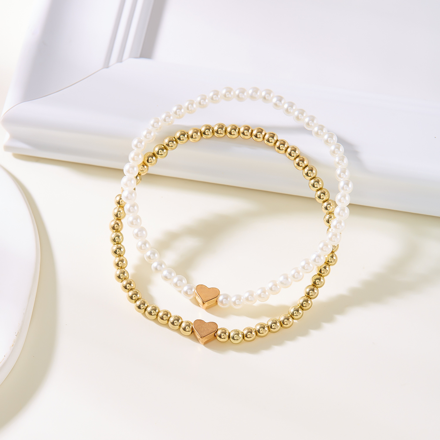 Bracelets en laiton, avec plastique revêtu de cuivre & perle de plastique, Placage de couleur d'or, styles différents pour le choix & pour femme, plus de couleurs à choisir, Vendu par fixé