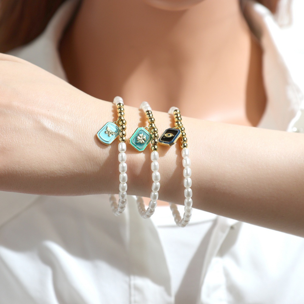 Bracelets en laiton, avec Shell Pearl, rectangle, Placage de couleur d'or, modèles différents pour le choix & pour femme & émail, plus de couleurs à choisir, protéger l'environnement, sans nickel, plomb et cadmium, Longueur 16-17 cm, Vendu par PC