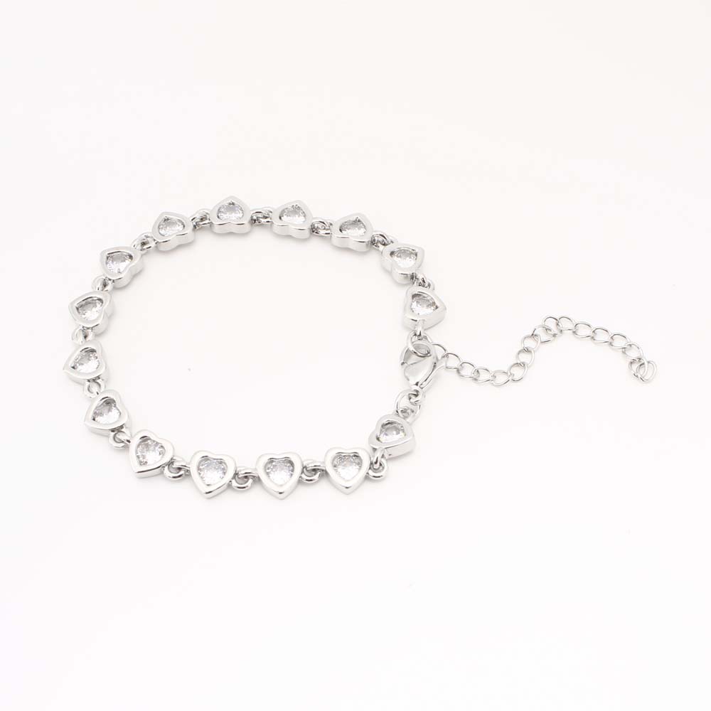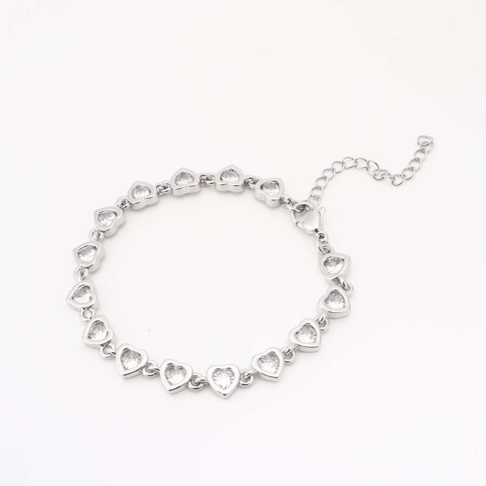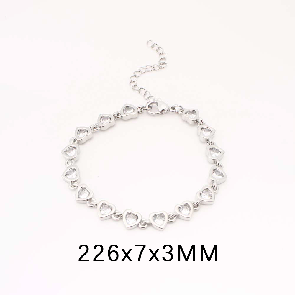 Bracelets en laiton, coeur, bijoux de mode & pavé de micro zircon & pour femme, argent, Vendu par PC