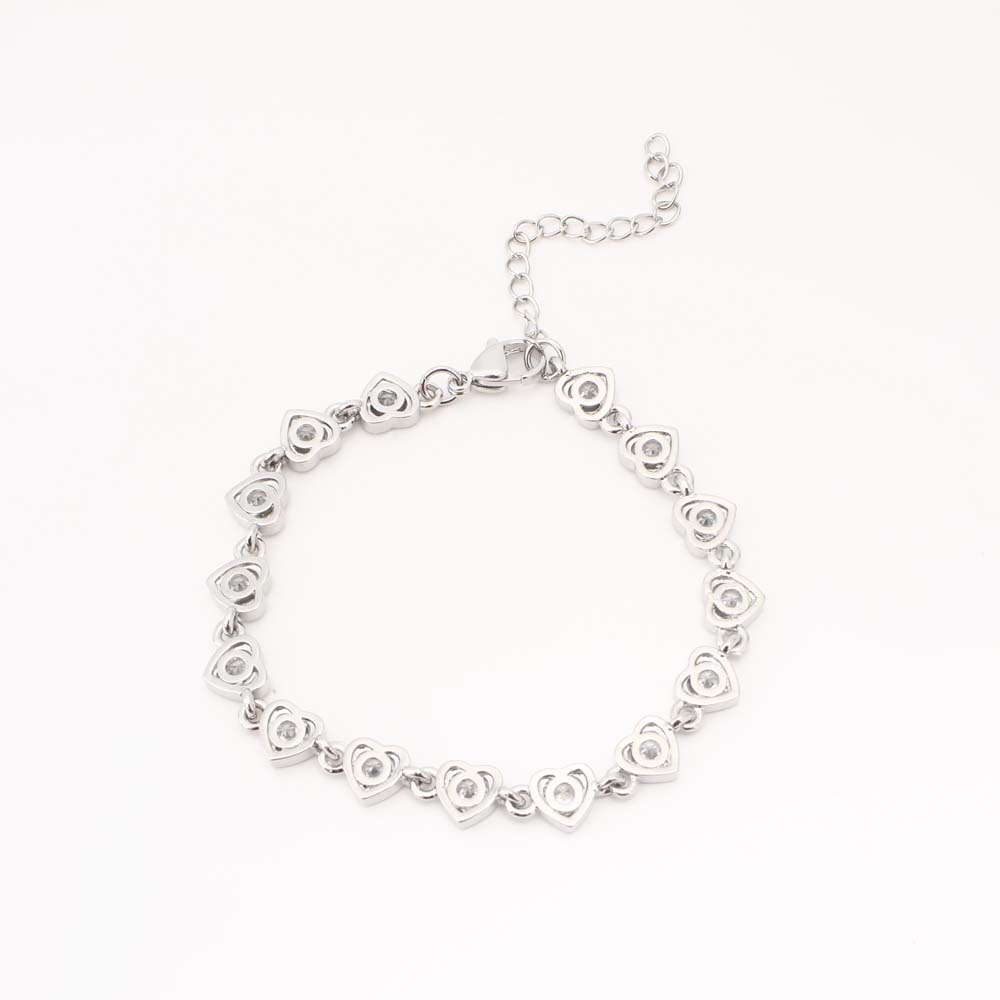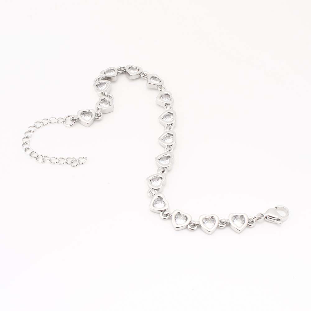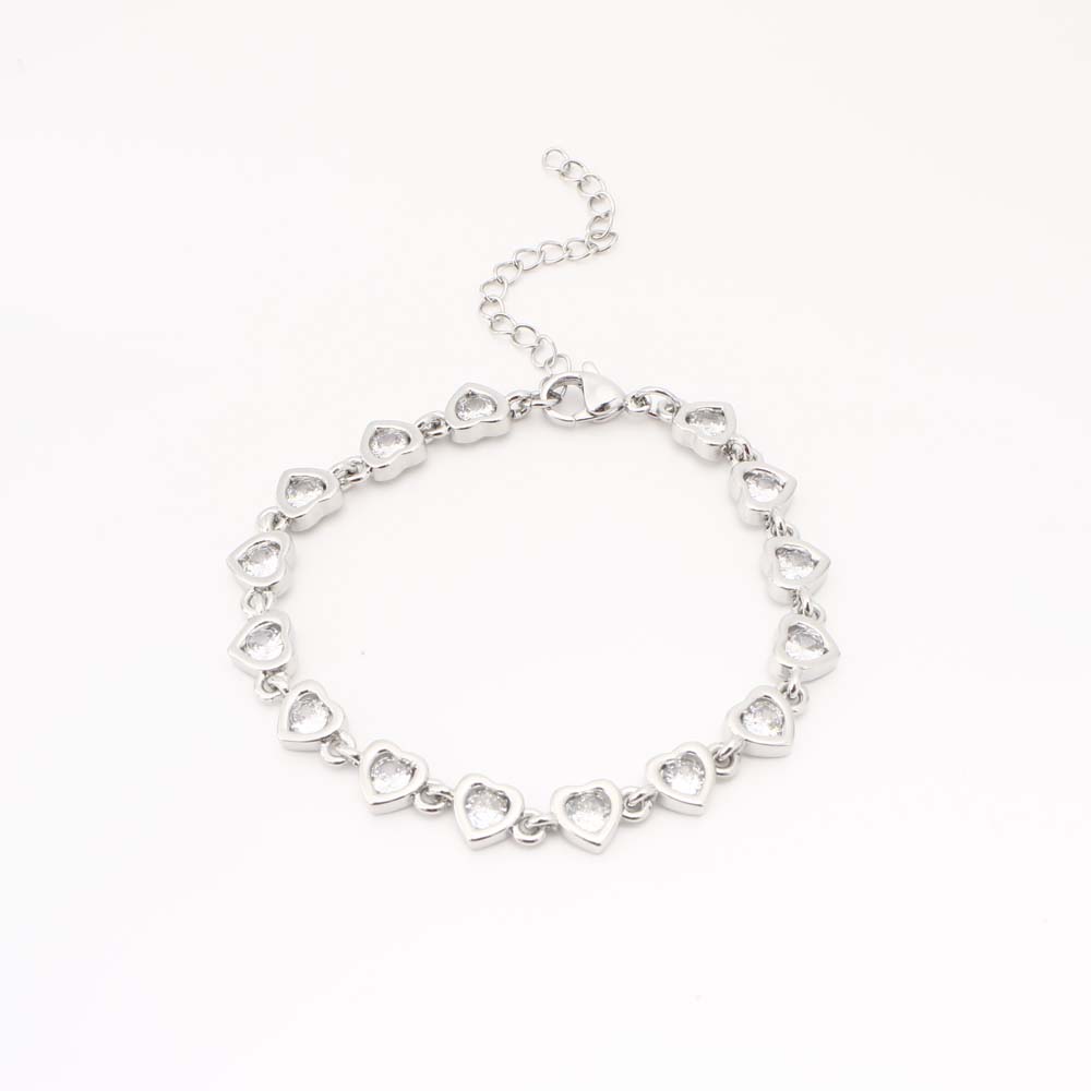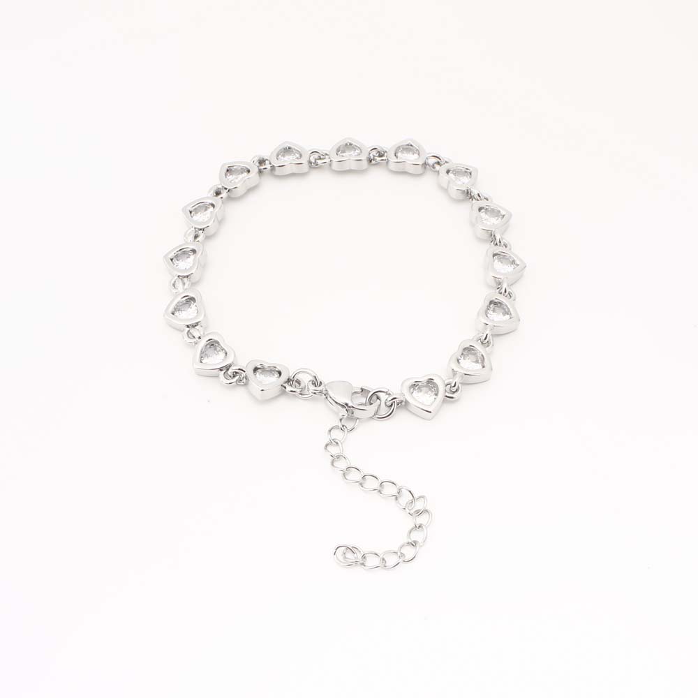 Bracelets en laiton, coeur, bijoux de mode & pavé de micro zircon & pour femme, argent, Vendu par PC