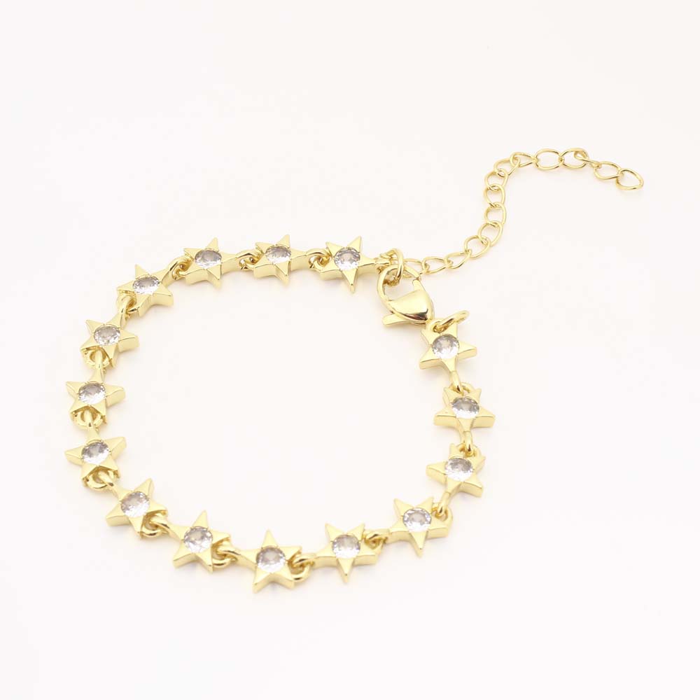 Bracelets en laiton, étoile, bijoux de mode & pavé de micro zircon & pour femme, doré, Vendu par PC