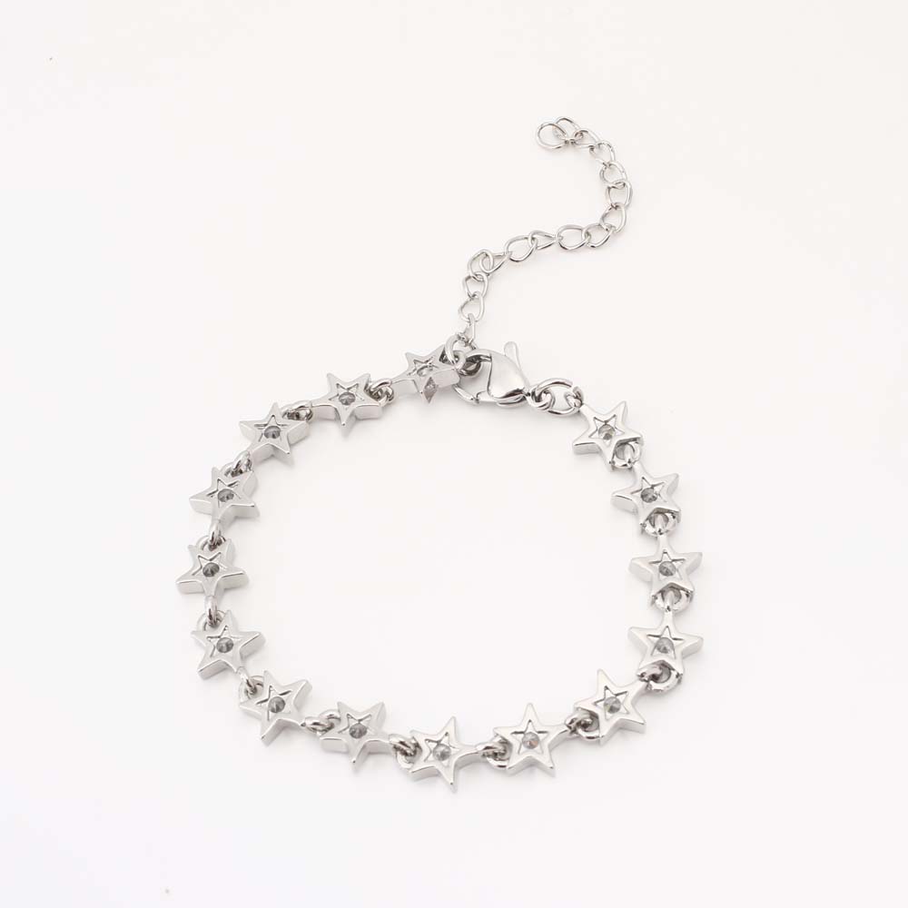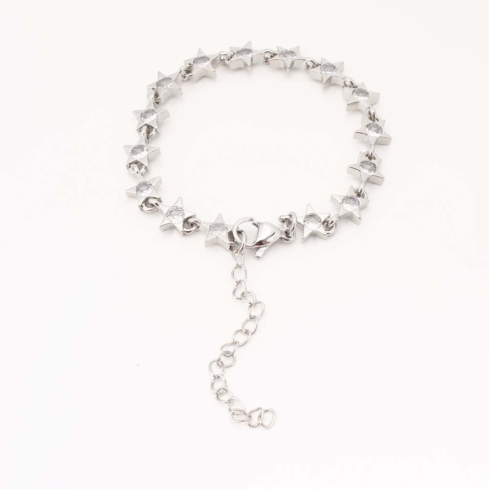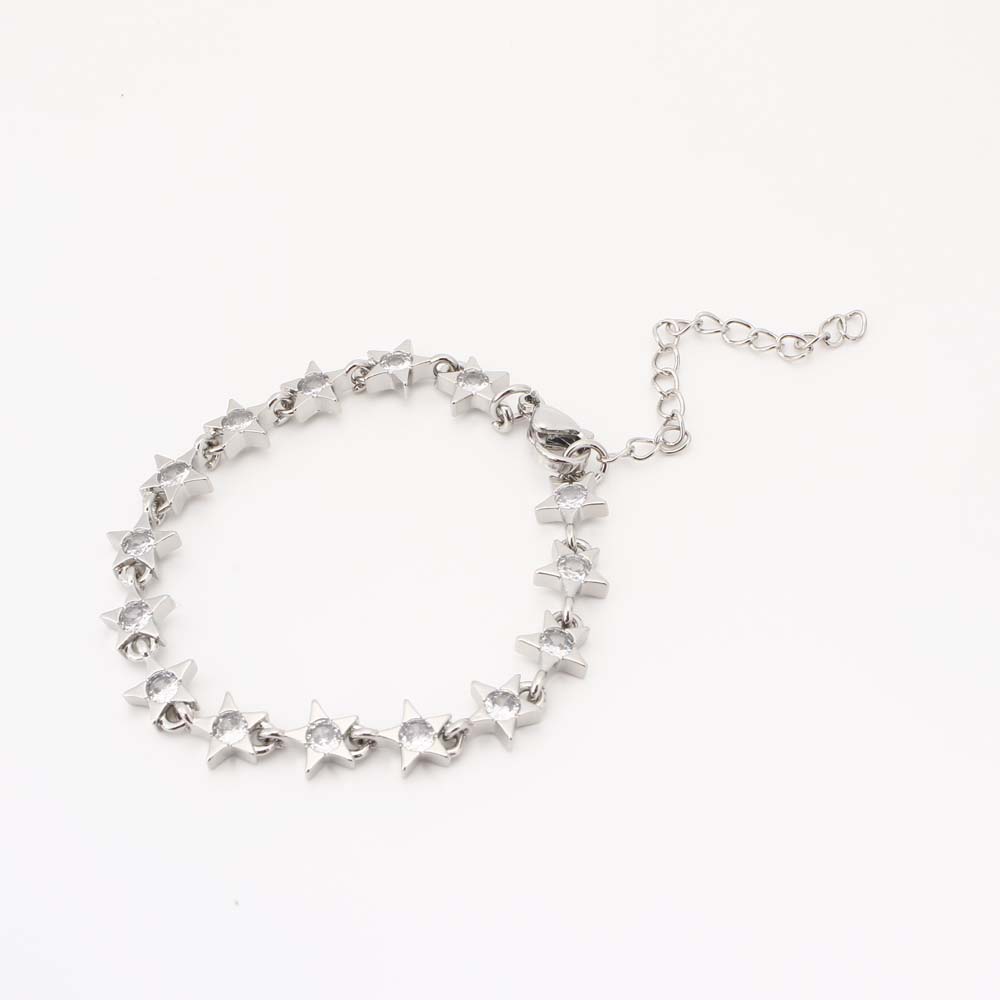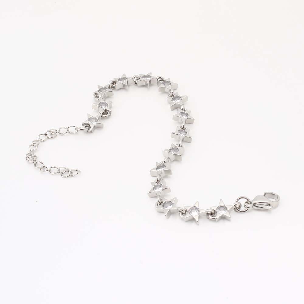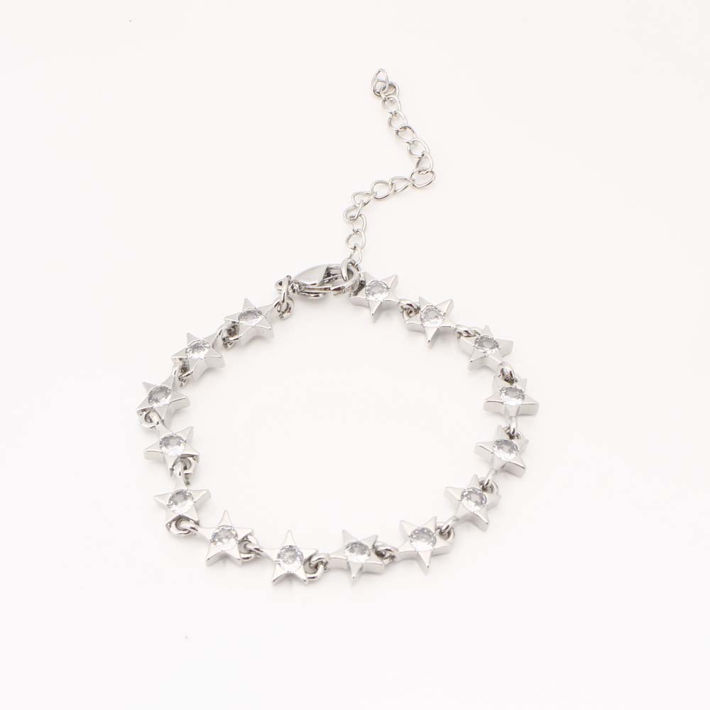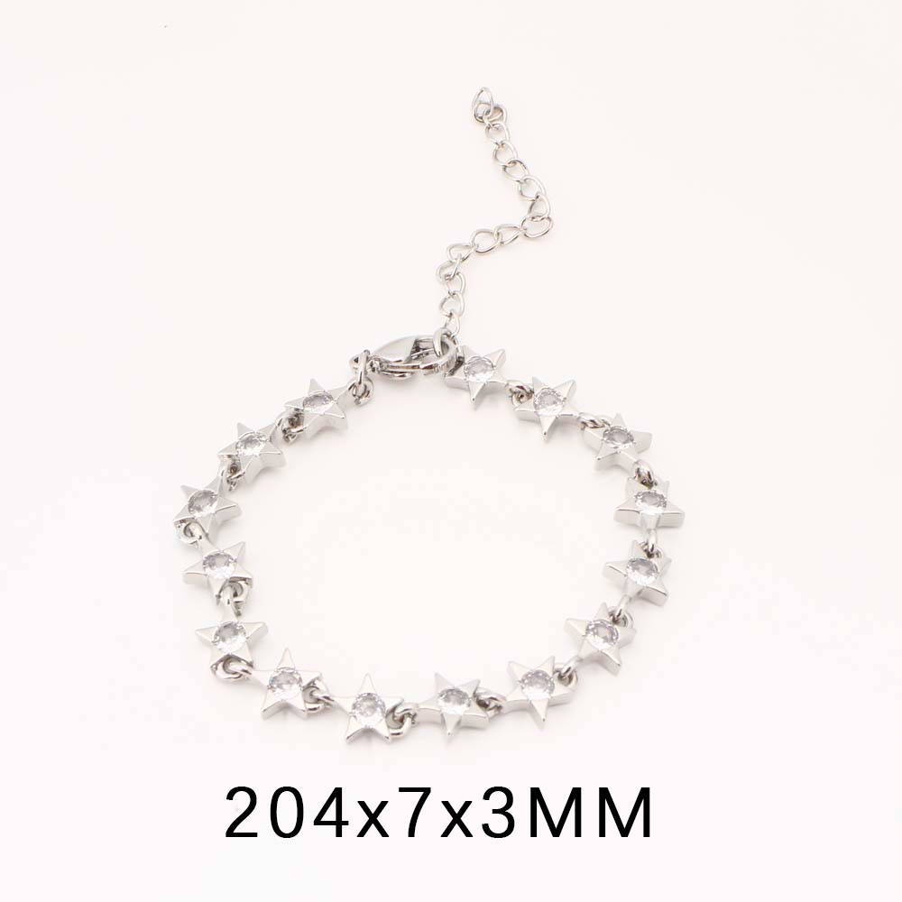 Bracelets en laiton, étoile, bijoux de mode & pavé de micro zircon & pour femme, argent, Vendu par PC