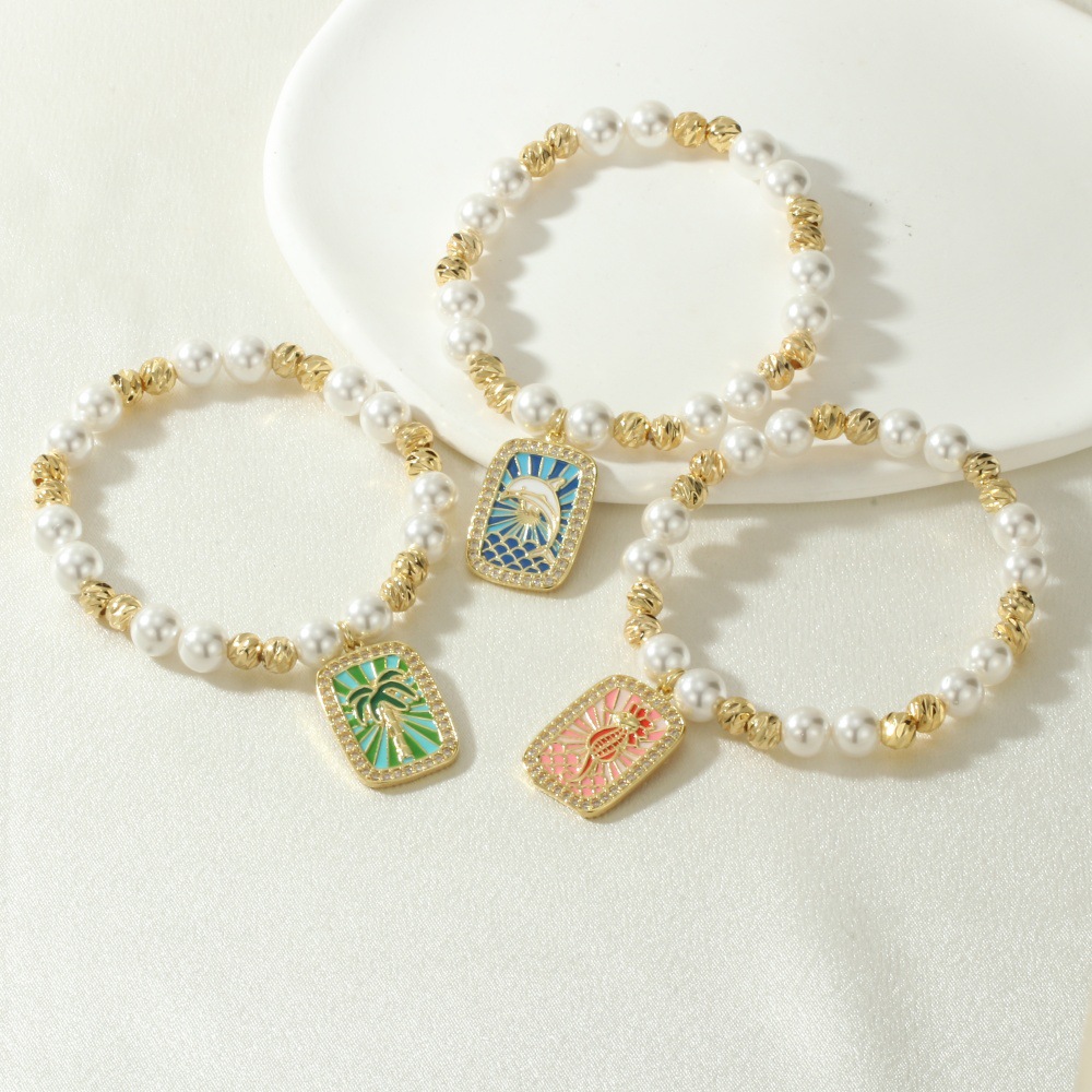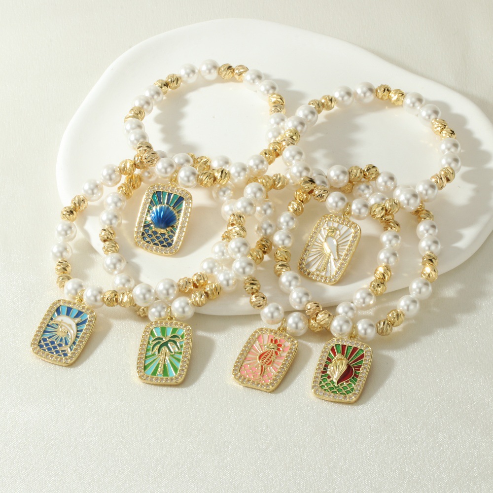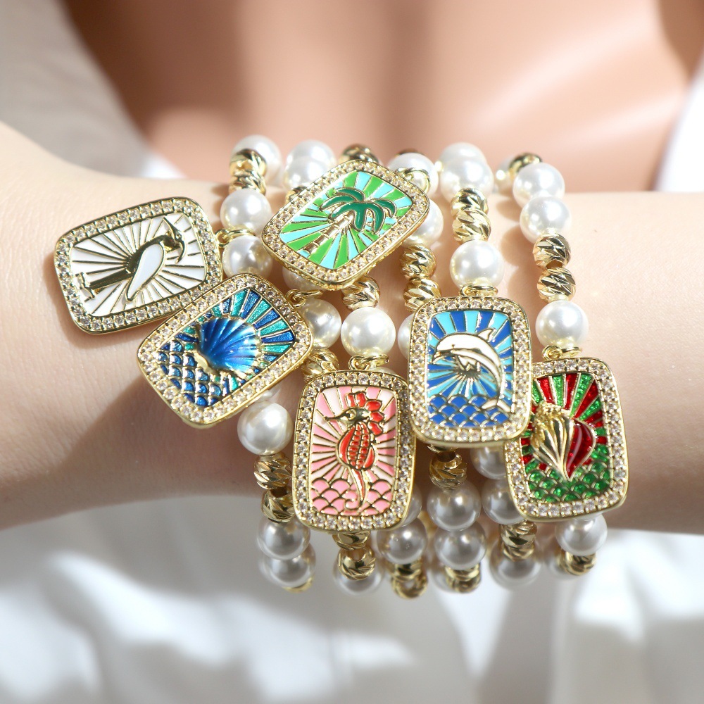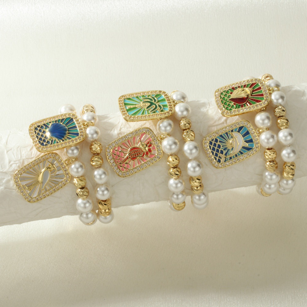 Bracelets en laiton, avec Shell Pearl, Placage, bijoux de mode & pavé de micro zircon & émail, plus de couleurs à choisir, protéger l'environnement, sans nickel, plomb et cadmium, Vendu par PC