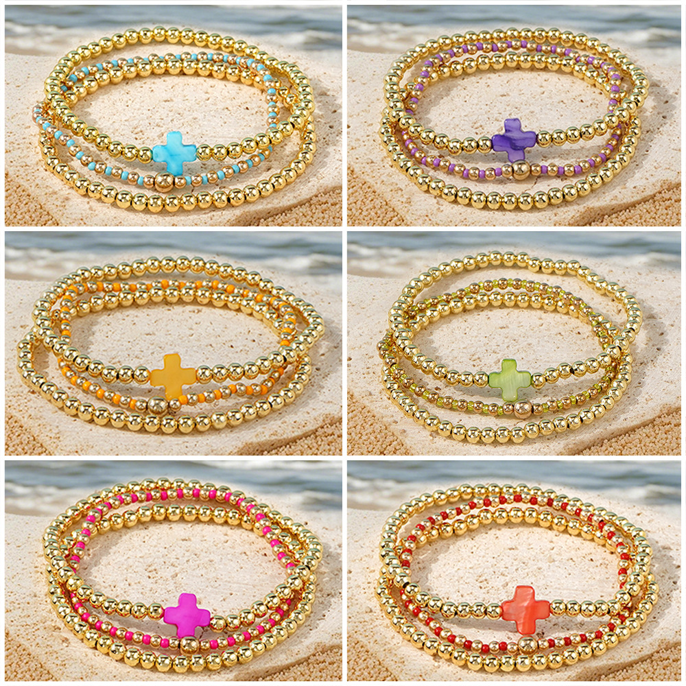 Bracelets en laiton, coquille, avec laiton, Placage de couleur d'or, bijoux de mode, plus de couleurs à choisir, 3Strandstoron/fixé, Vendu par fixé