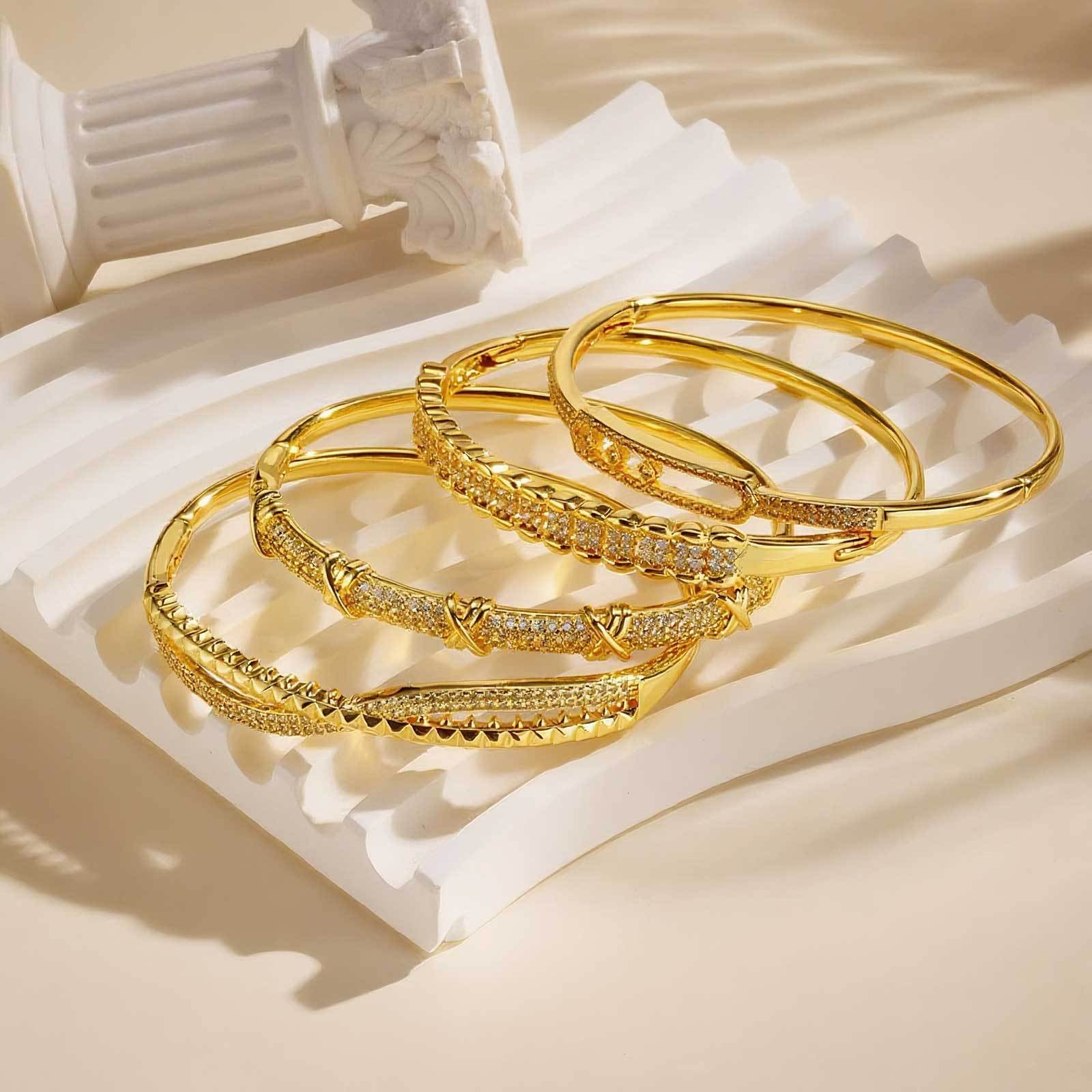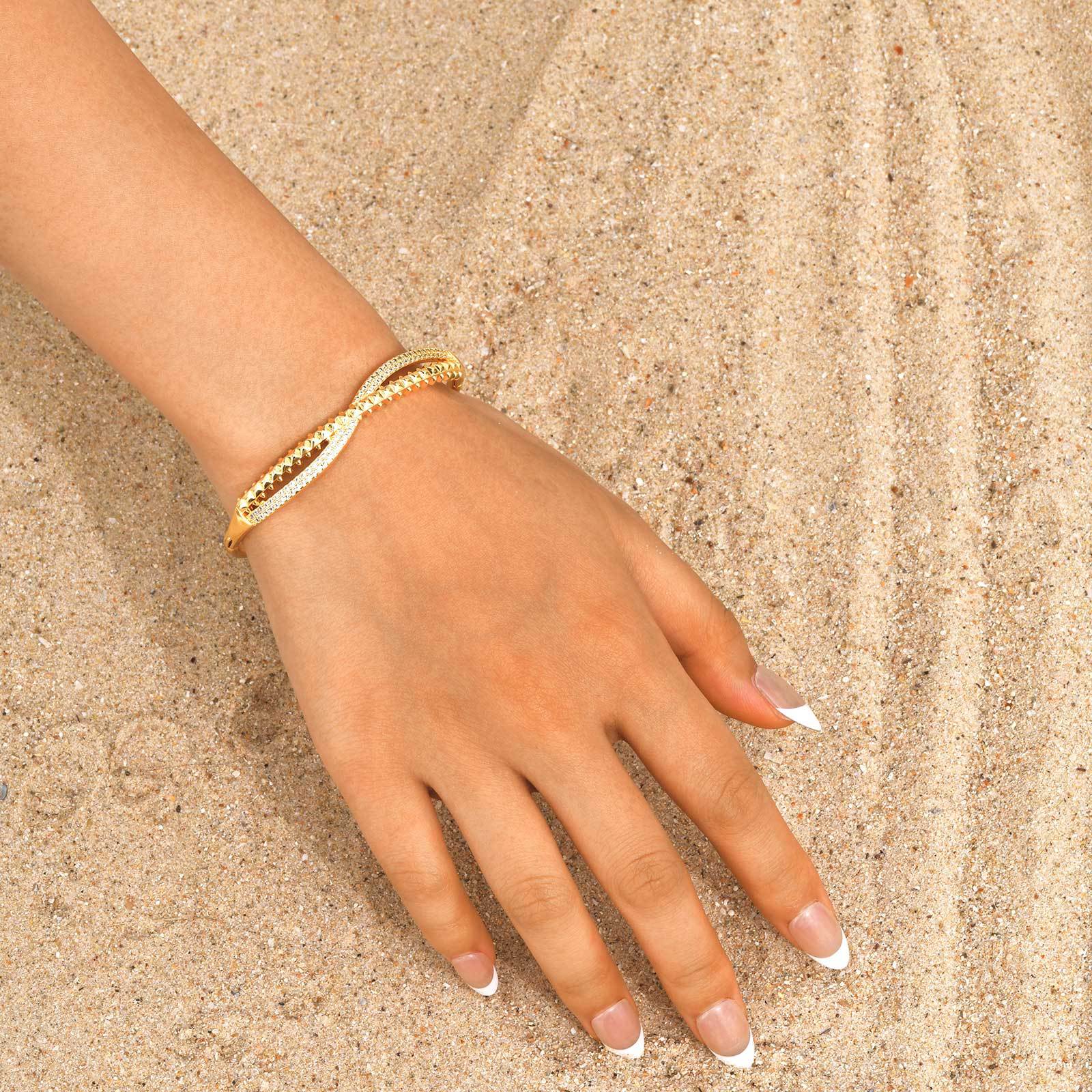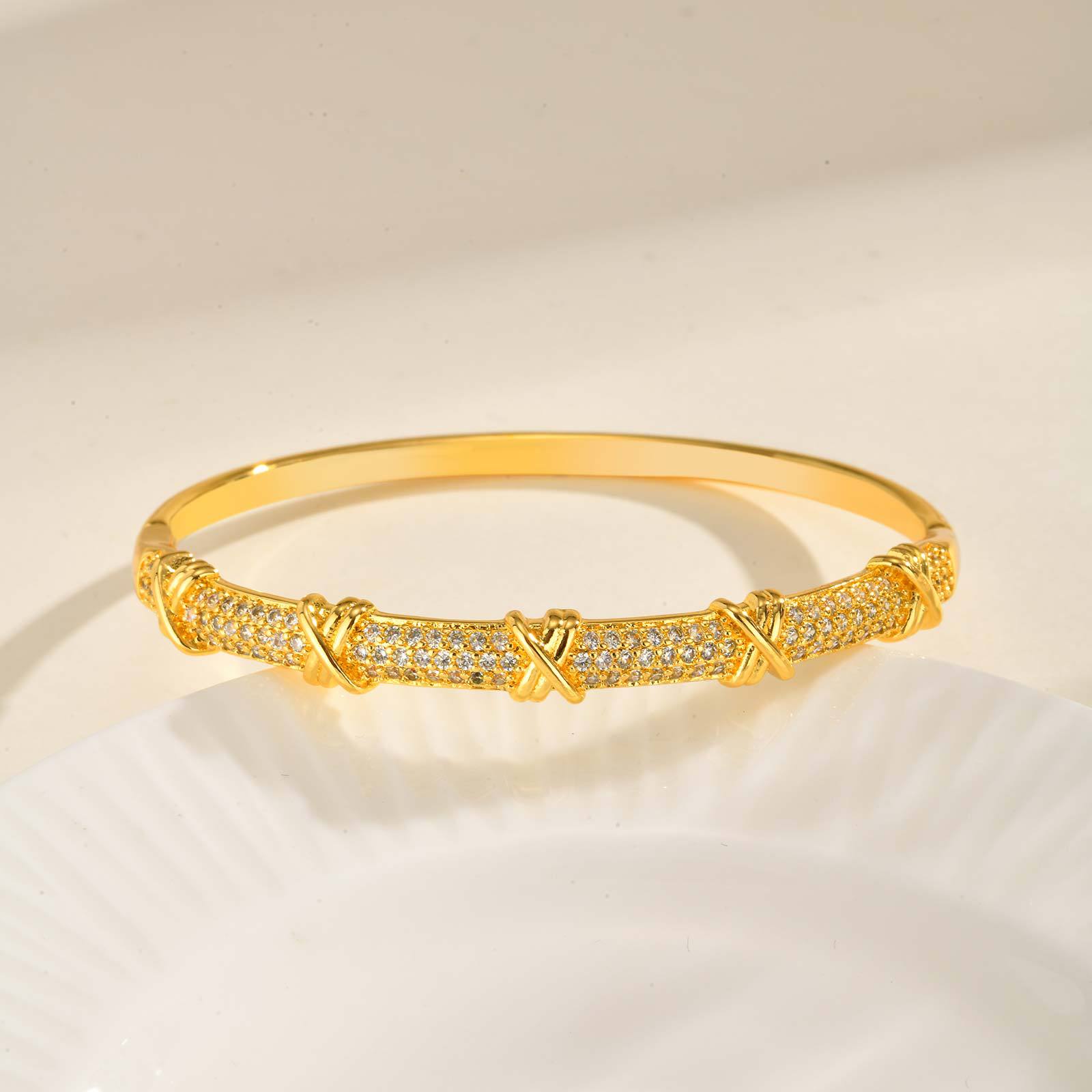 Bracelets en laiton, Placage, styles différents pour le choix & pavé de micro zircon & pour femme, doré, Vendu par PC