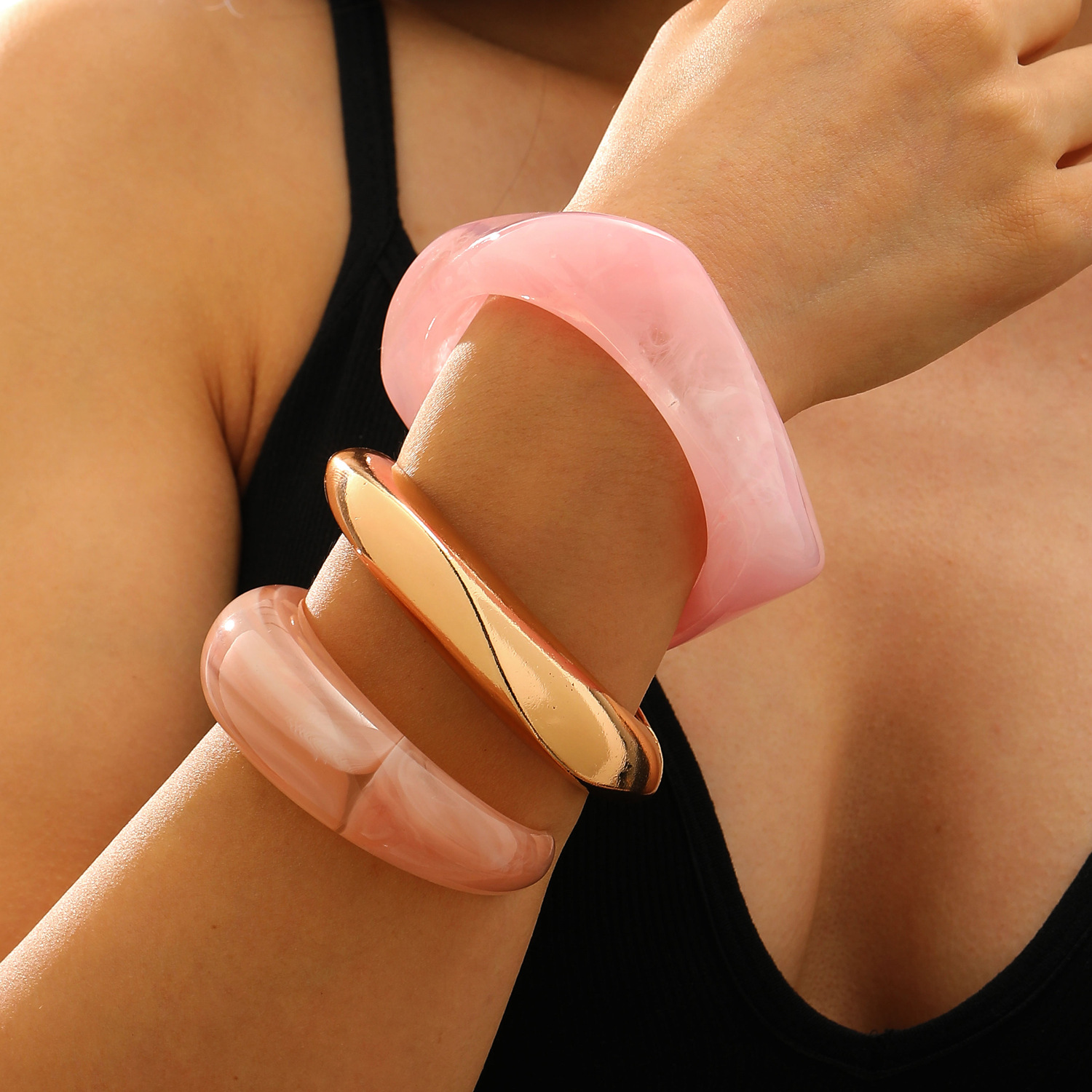 Bracelets résine, avec alliage de zinc, Placage de couleur d'or, bijoux de mode, plus de couleurs à choisir, Vendu par PC