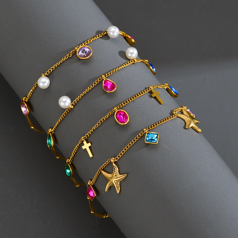 Braguette en acier inoxydable, Acier inoxydable 304, avec zircon cubique & perle de plastique, Placage, bijoux de mode & styles différents pour le choix & pour femme, doré, Vendu par PC