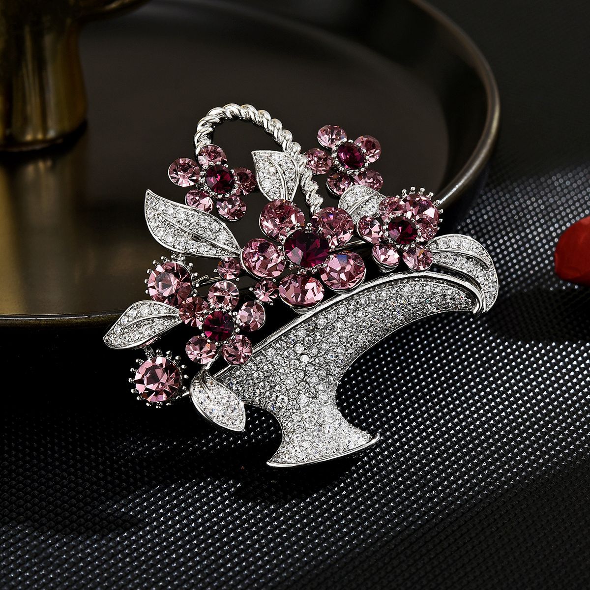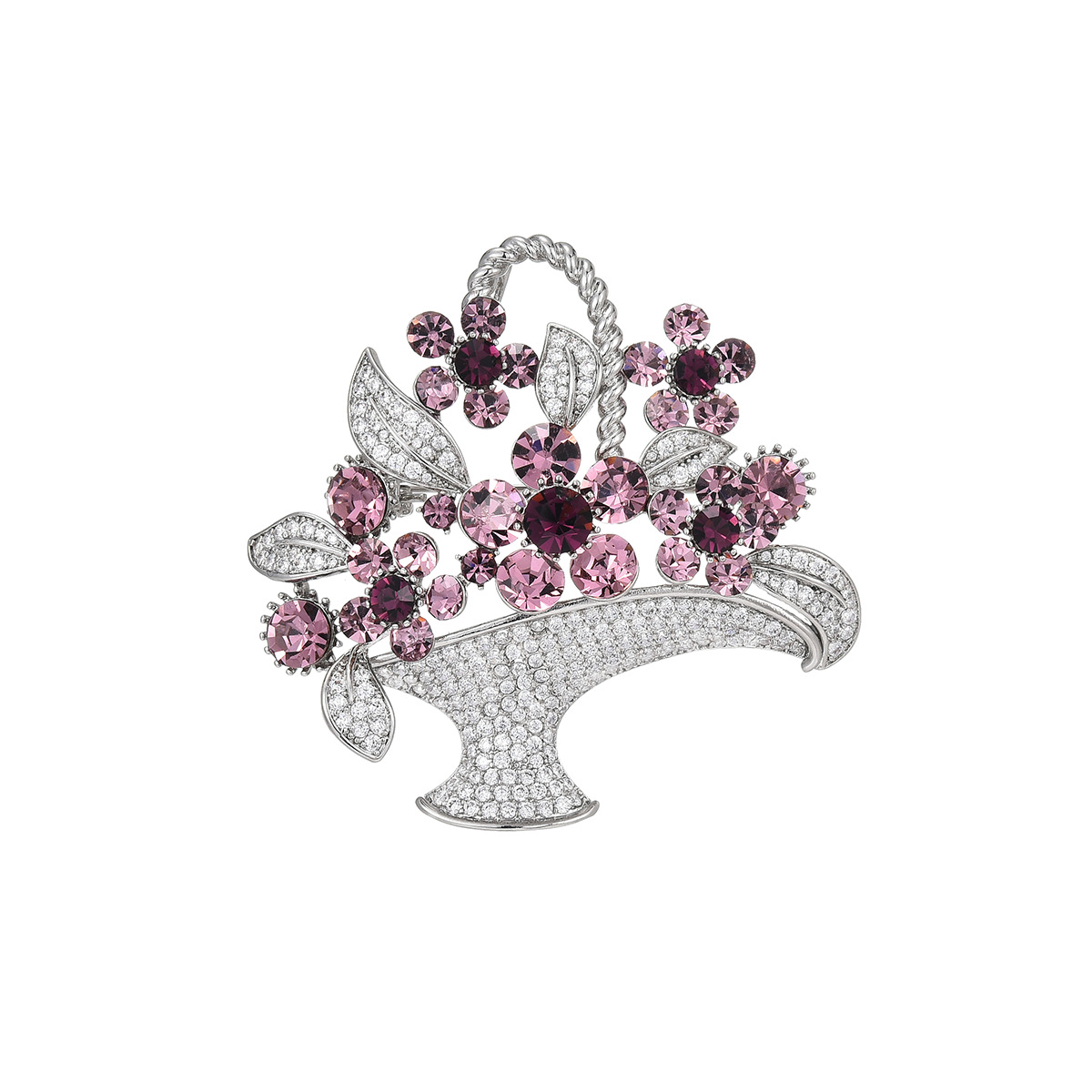 Broche cristal, laiton, avec Cristal autrichien, Placage, pavé de micro zircon & pour femme, argent, 53x54mm, Vendu par PC