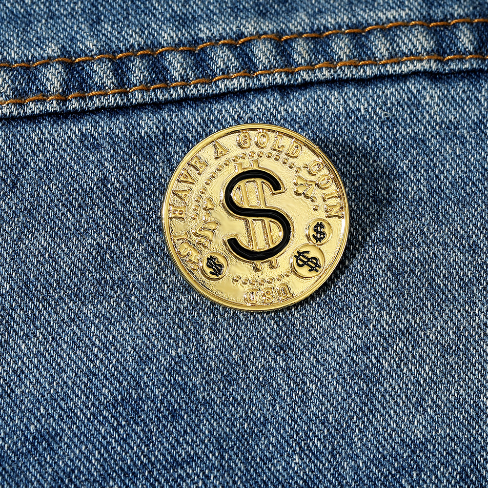 Broche émail, alliage de zinc, Rond, pour homme, doré, Vendu par PC