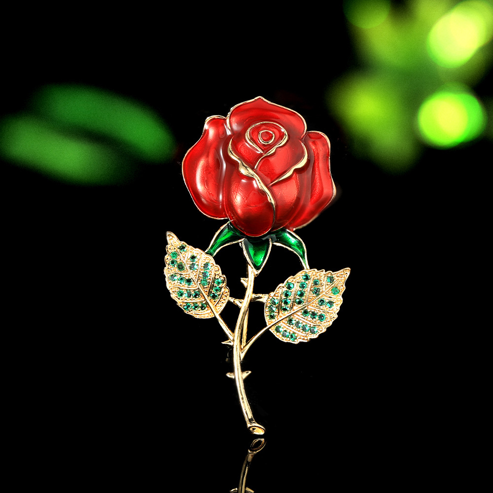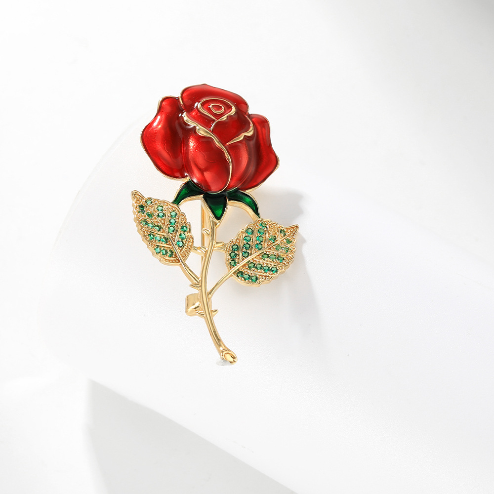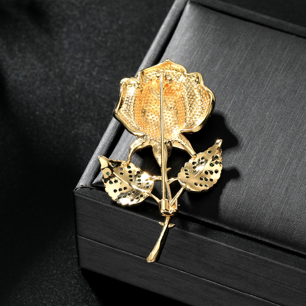 Broche émail, laiton, Rose, Placage, pour femme & avec strass, doré, Vendu par PC