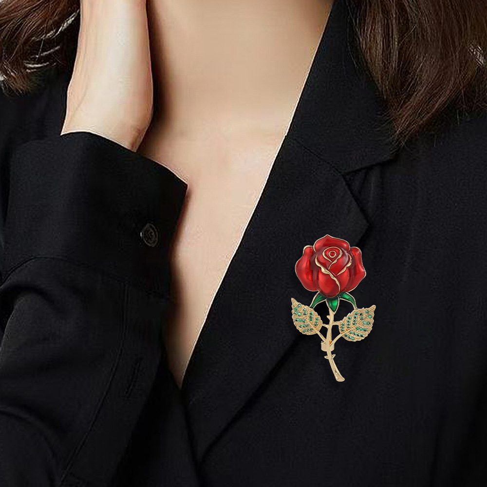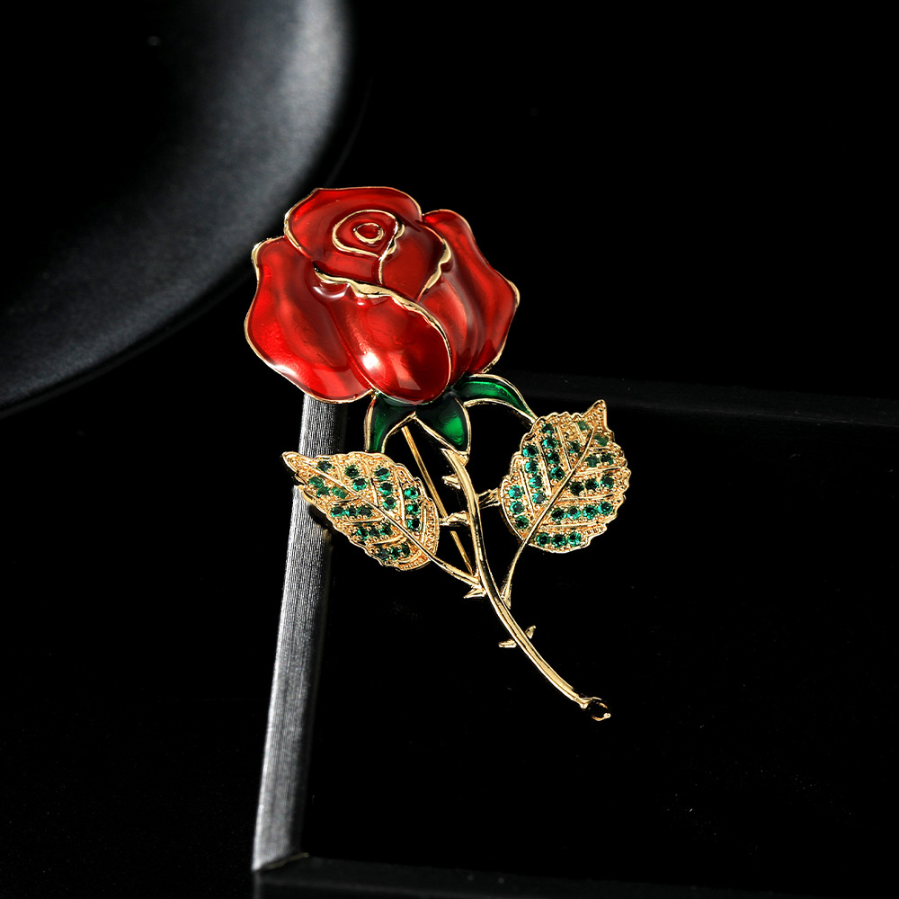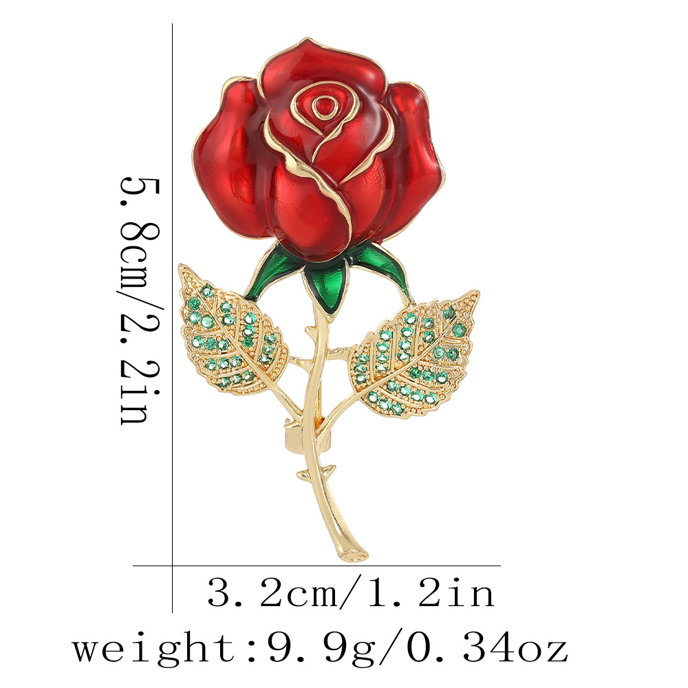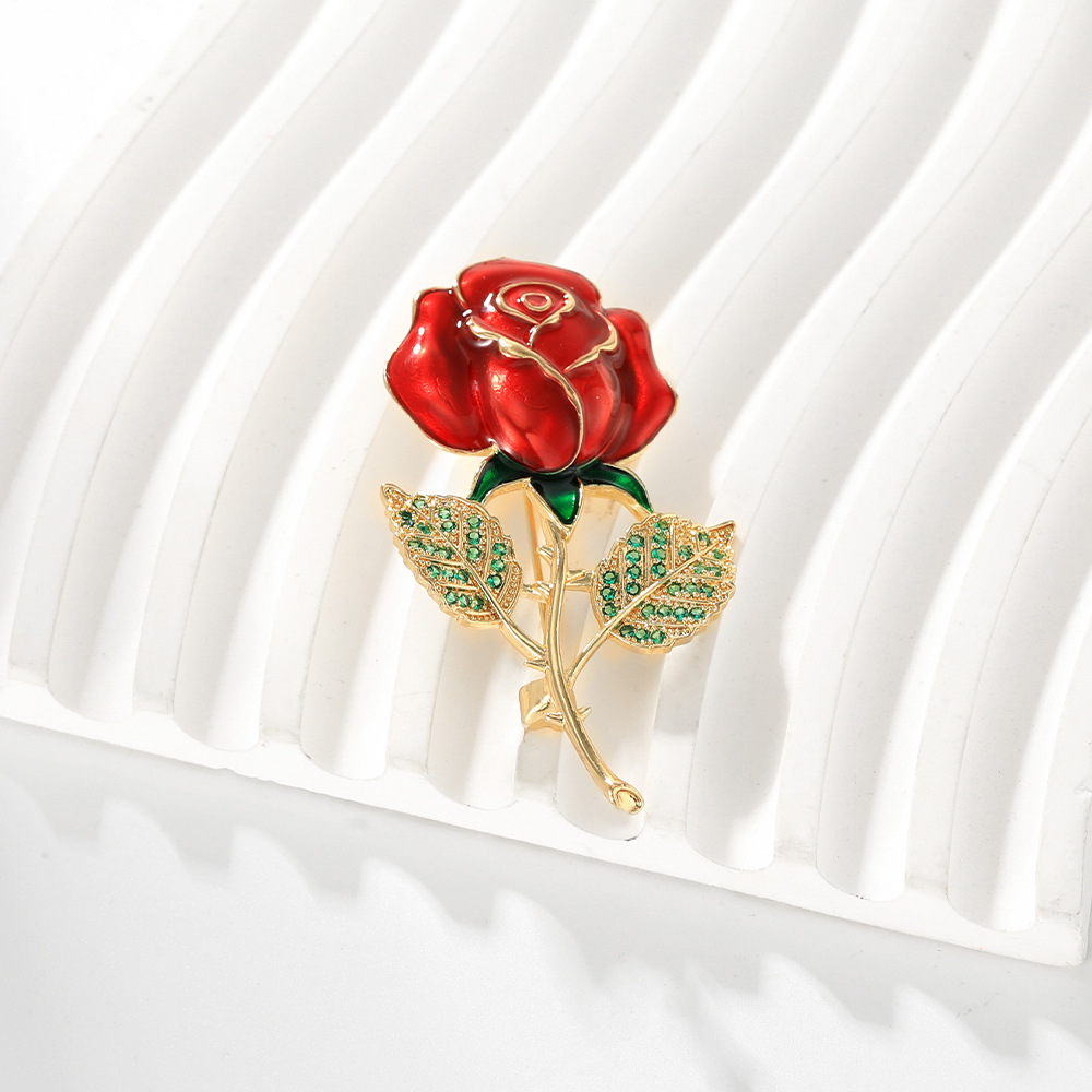 Broche émail, laiton, Rose, Placage, pour femme & avec strass, doré, Vendu par PC