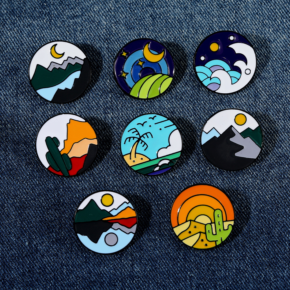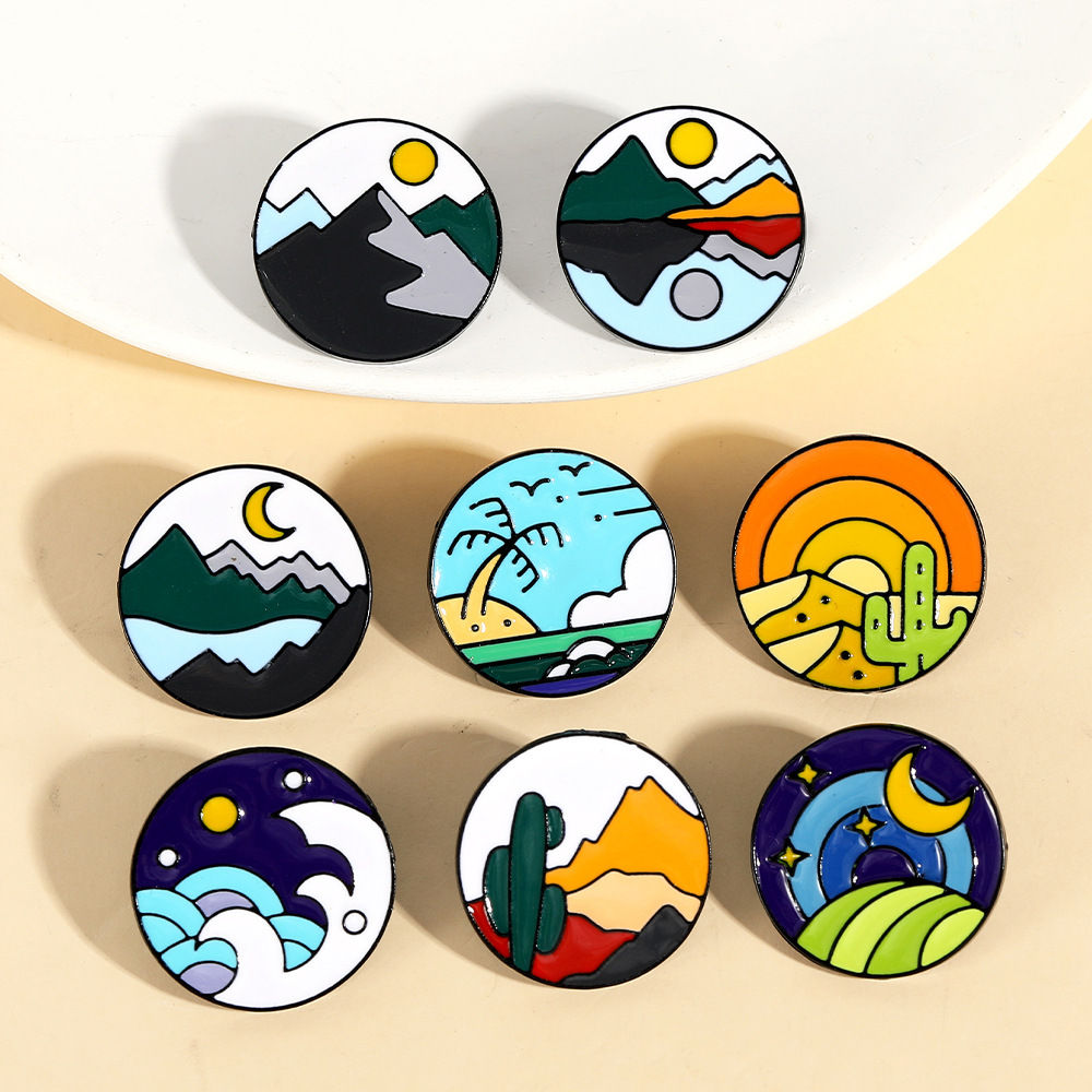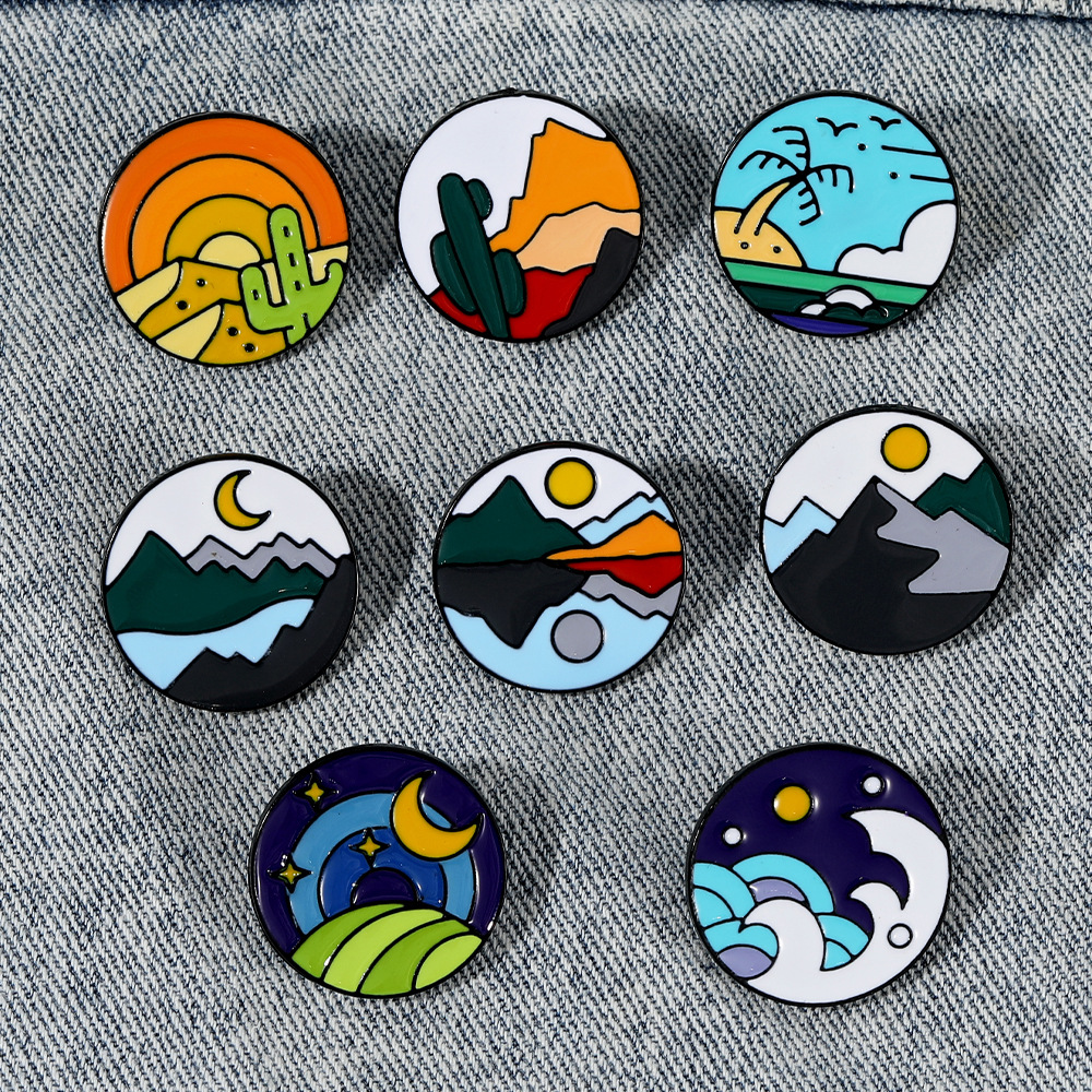 Broche émail, alliage de zinc, Rond, unisexe & modèles différents pour le choix, noire, Vendu par PC