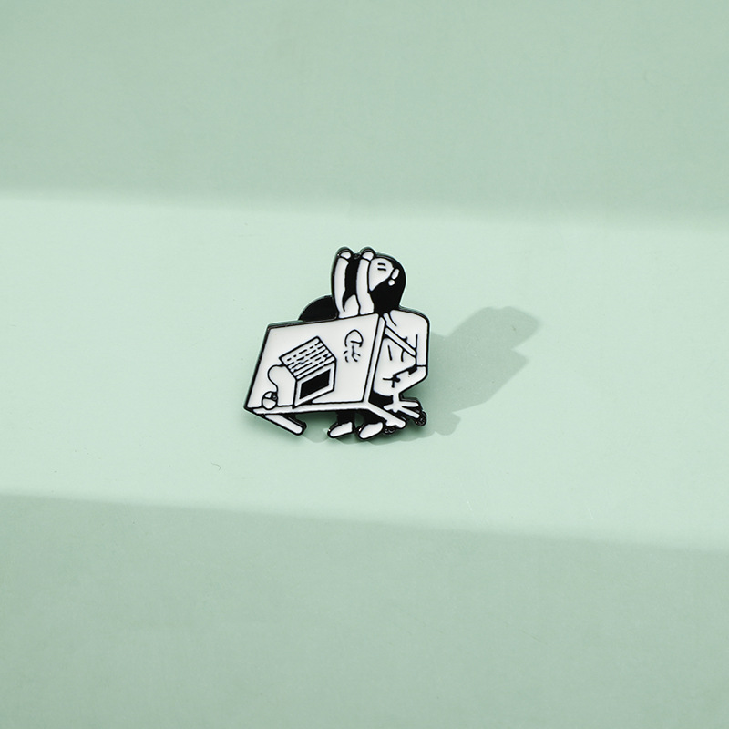 Broche émail, alliage de zinc, unisexe, noire, Vendu par PC