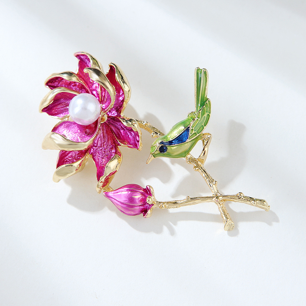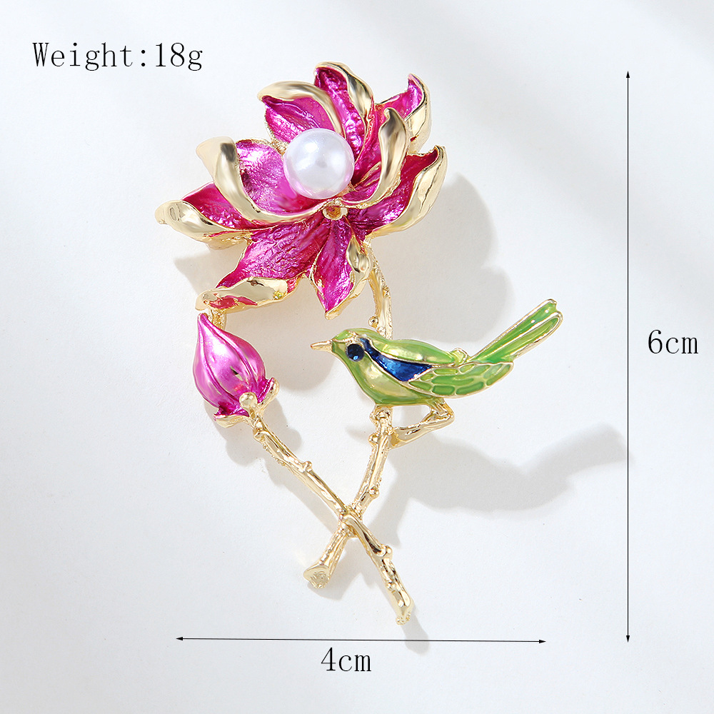 Broche émail, alliage de zinc, avec perle de plastique, Placage de couleur d'or, bijoux de mode & pour femme, Vendu par PC