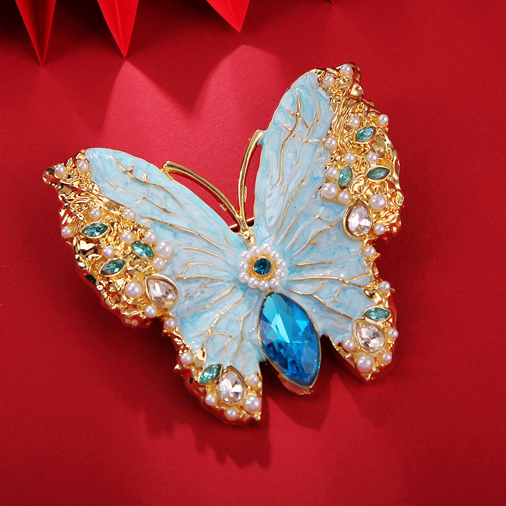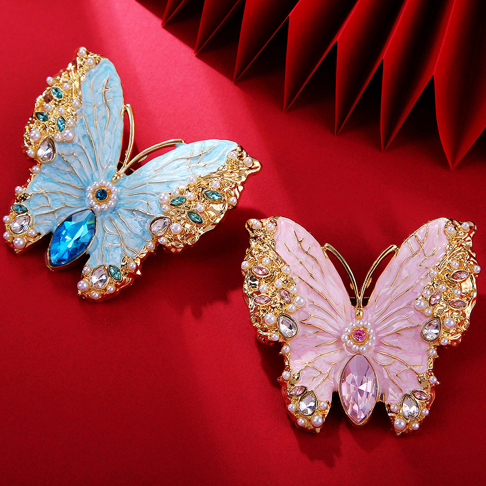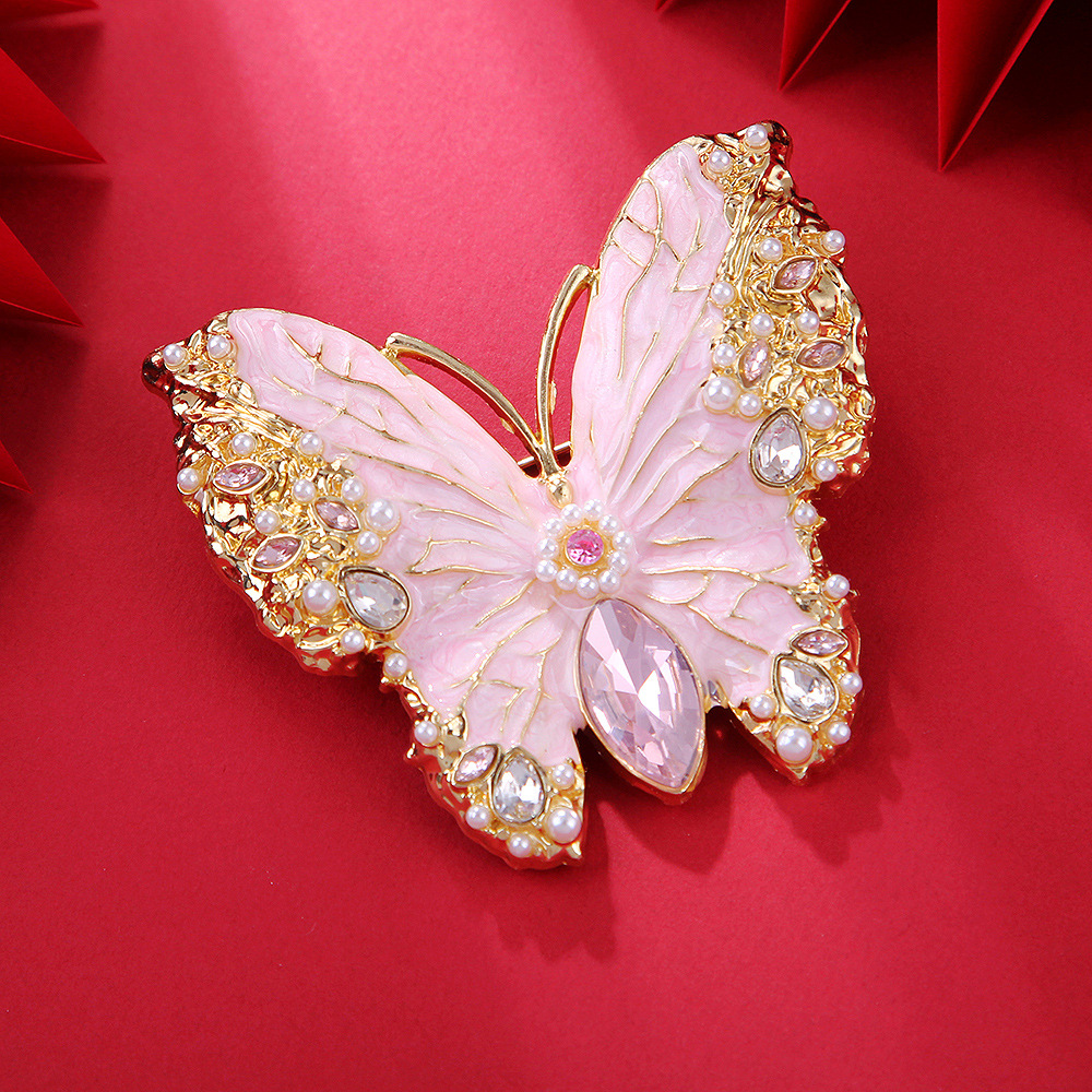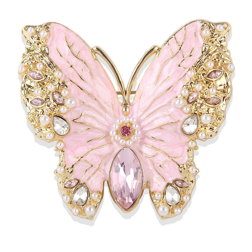 Broche émail, alliage de zinc, avec perle de plastique, papillon, Placage, pour femme & avec strass, plus de couleurs à choisir, Vendu par PC