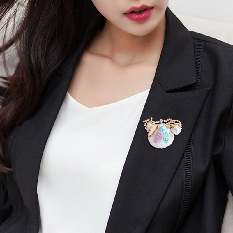 Broche émail, alliage de zinc, avec perle de plastique, Placage, unisexe & creux, Vendu par PC