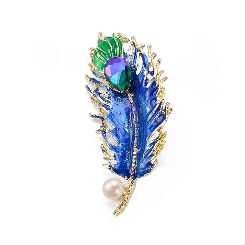Broche perle d'eau douce, alliage de zinc, avec perle d'eau douce cultivée & strass, Placage de couleur d'or, bijoux de mode & émail, plus de couleurs à choisir, 31.82x10.65x74.55mm, Vendu par PC