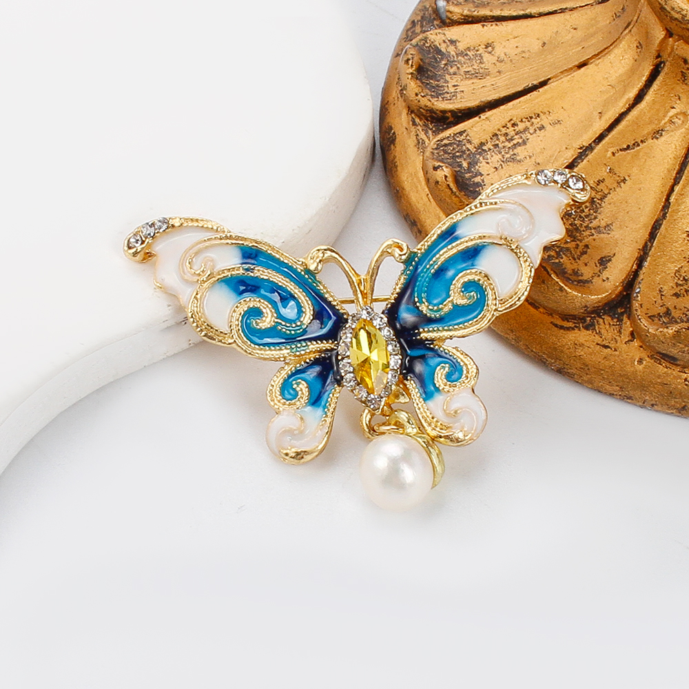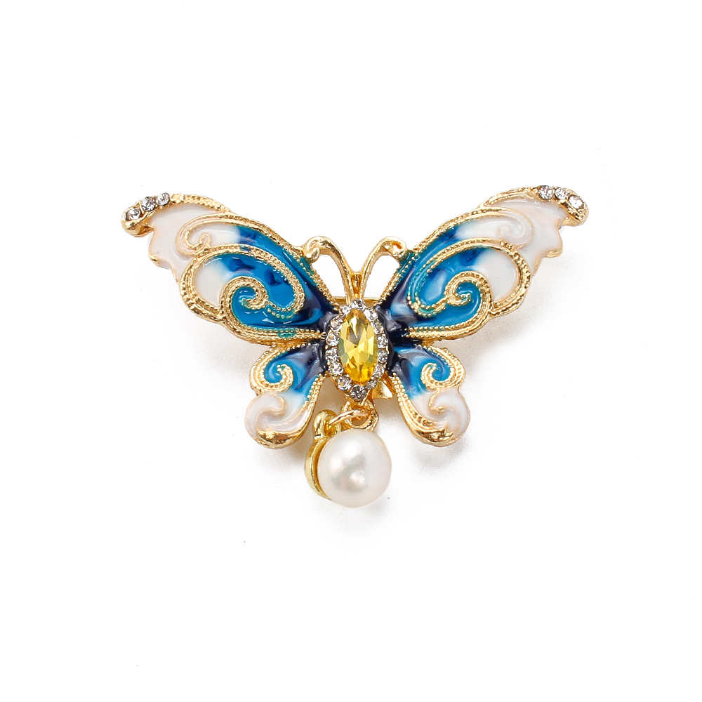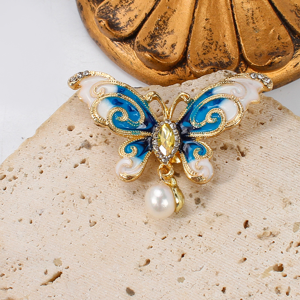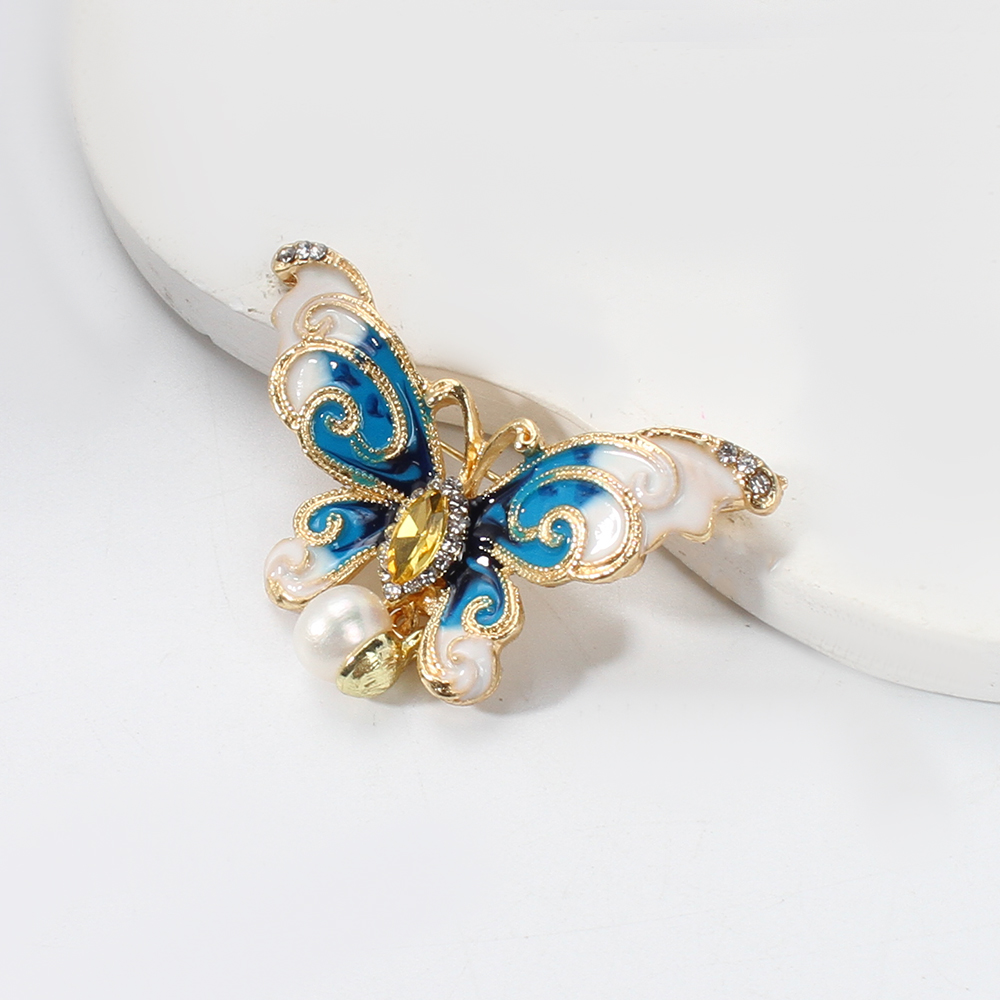 Broche perle d'eau douce, alliage de zinc, avec perle d'eau douce cultivée, Placage de couleur d'or, bijoux de mode & émail & avec strass, plus de couleurs à choisir, 48.88x8.45x34.19mm, Vendu par PC
