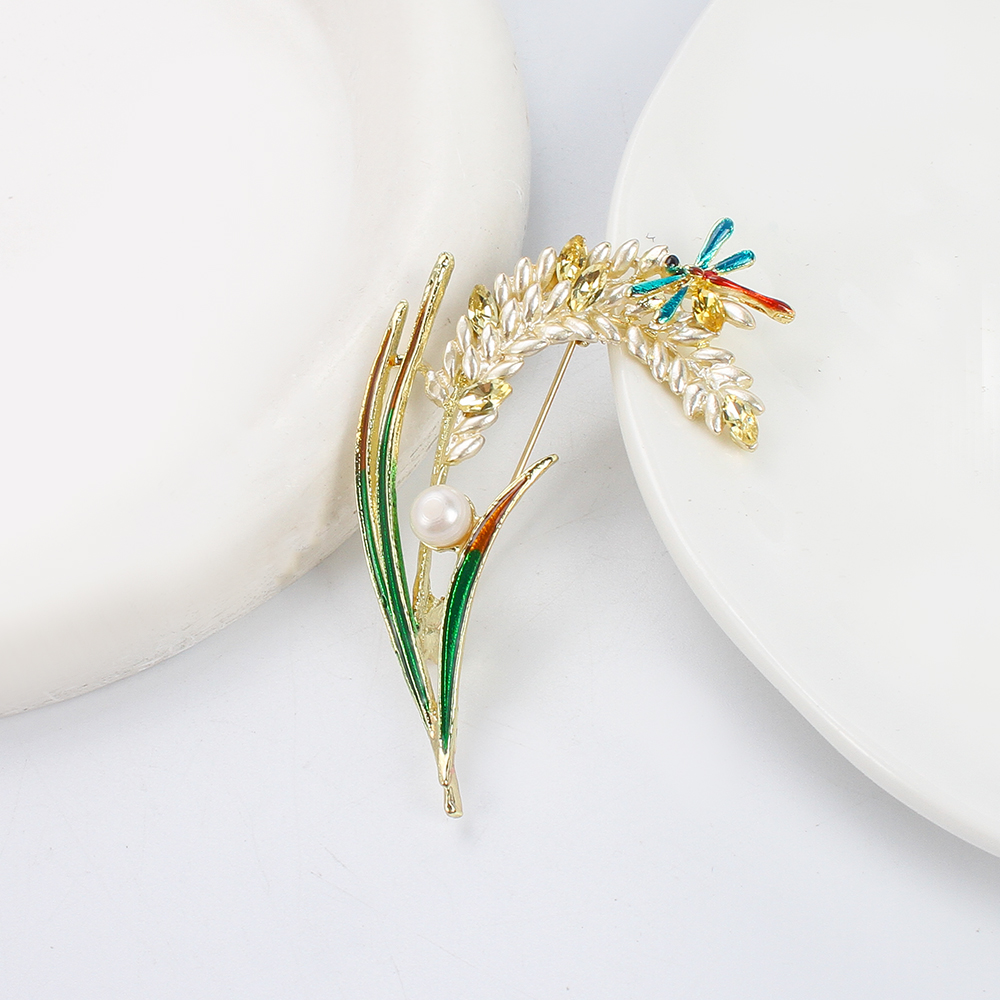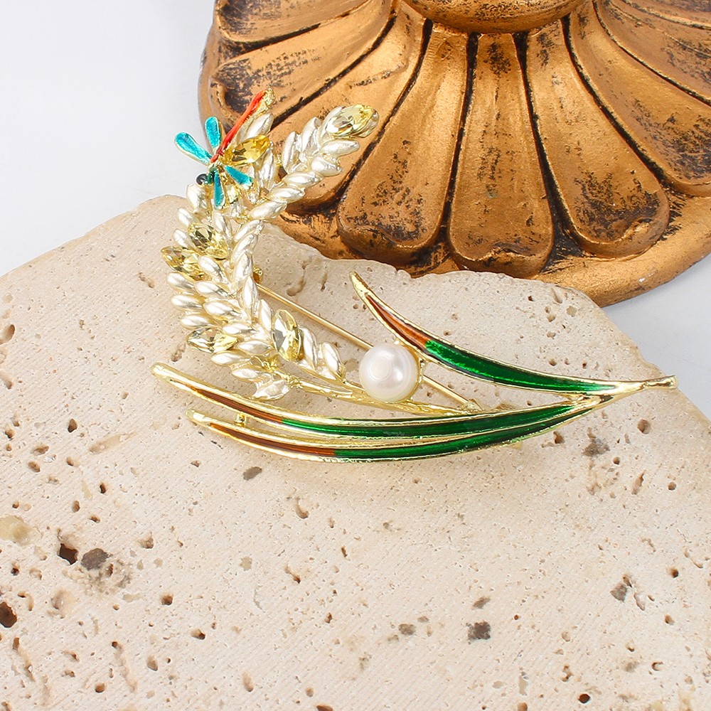 Broche perle d'eau douce, alliage de zinc, avec perle d'eau douce cultivée, Placage de couleur d'or, bijoux de mode & émail & avec strass, plus de couleurs à choisir, 41.51x11.28x70.08mm, Vendu par PC