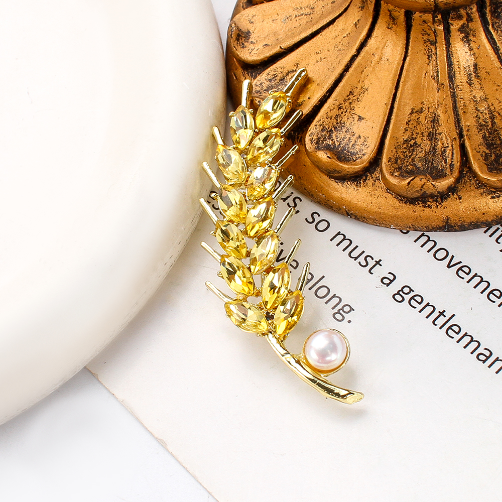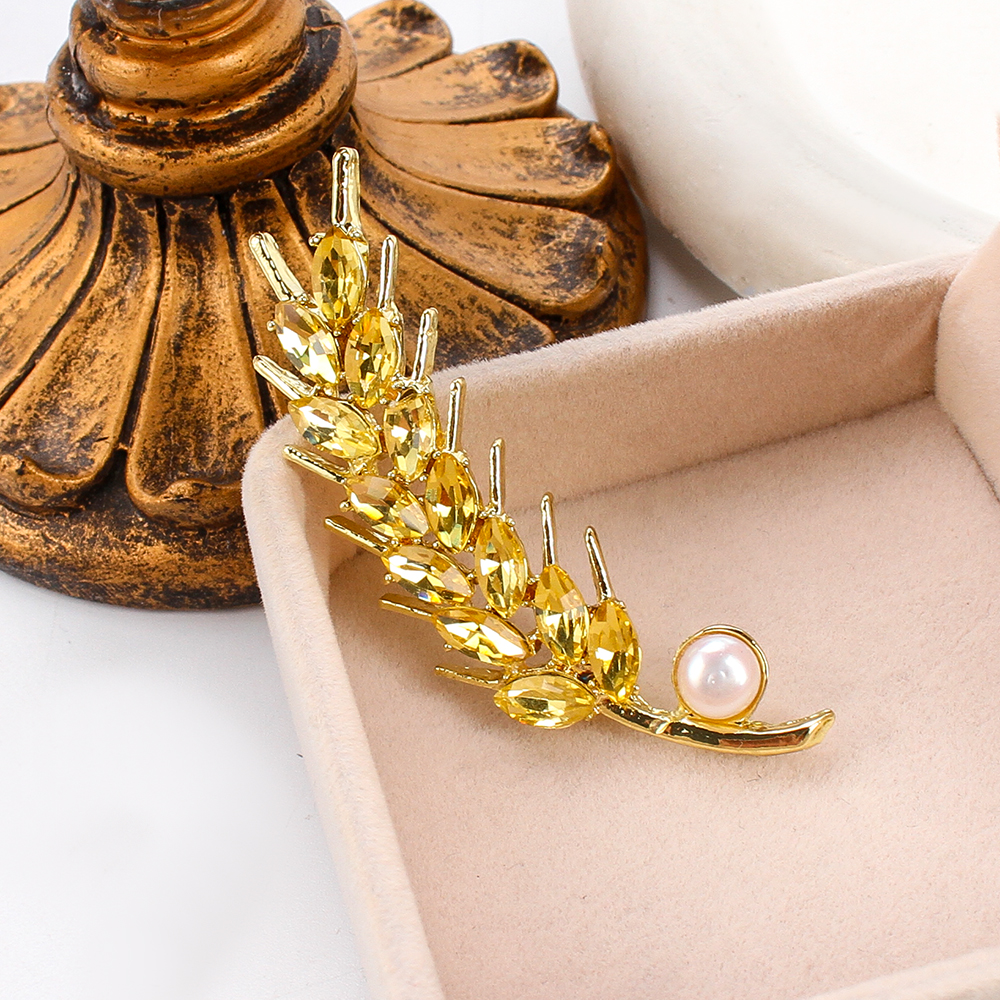 Broche perle d'eau douce, alliage de zinc, avec perle d'eau douce cultivée, Placage de couleur d'or, bijoux de mode & avec strass, plus de couleurs à choisir, 18.26x10.49x60.53mm, Vendu par PC