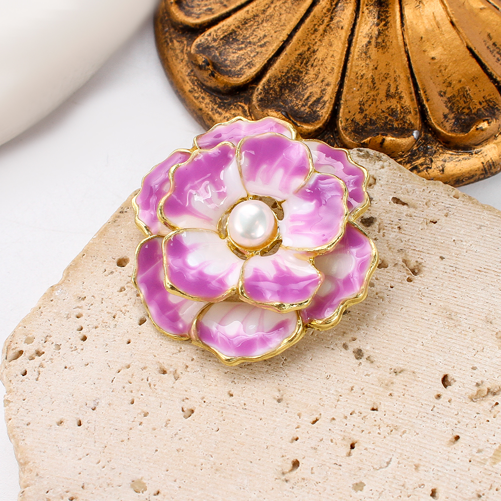 Broche perle d'eau douce, alliage de zinc, avec perle d'eau douce cultivée, Placage de couleur d'or, bijoux de mode & émail, plus de couleurs à choisir, 37.08x13.67x35.28mm, Vendu par PC