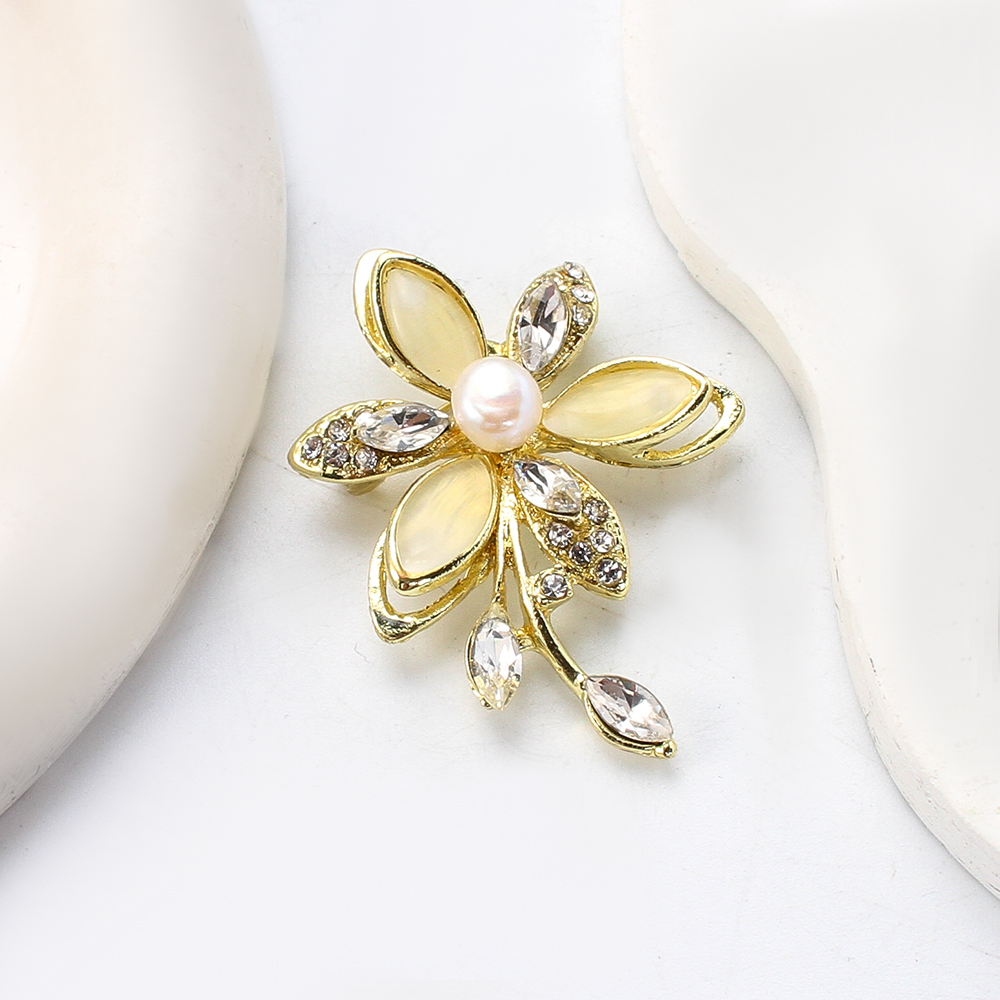 Broche perle d'eau douce, alliage de zinc, avec perle d'eau douce cultivée, Placage de couleur d'or, bijoux de mode & avec strass, plus de couleurs à choisir, 36.83x11.84x50.13mm, Vendu par PC