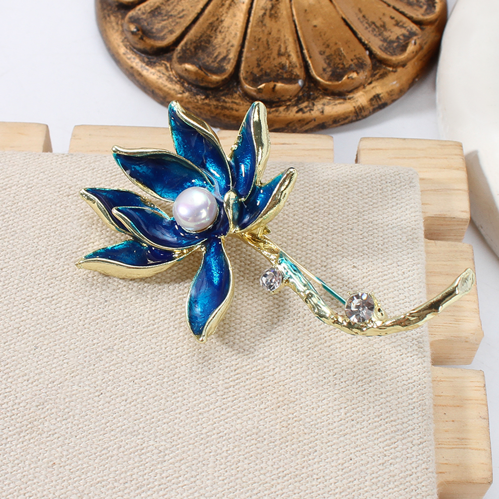 Broche perle d'eau douce, alliage de zinc, avec perle d'eau douce cultivée, Placage de couleur d'or, bijoux de mode & émail & avec strass, plus de couleurs à choisir, 40.29x12.92x65.97mm, Vendu par PC
