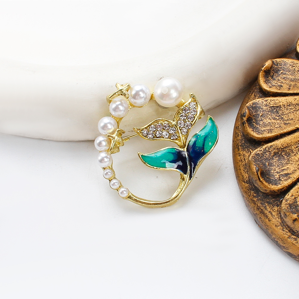 Broche perle d'eau douce, alliage de zinc, avec perle d'eau douce cultivée, Placage de couleur d'or, bijoux de mode & émail & avec strass, plus de couleurs à choisir, 31.19x11.32x32.96mm, Vendu par PC